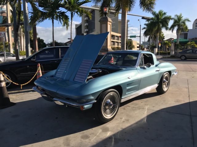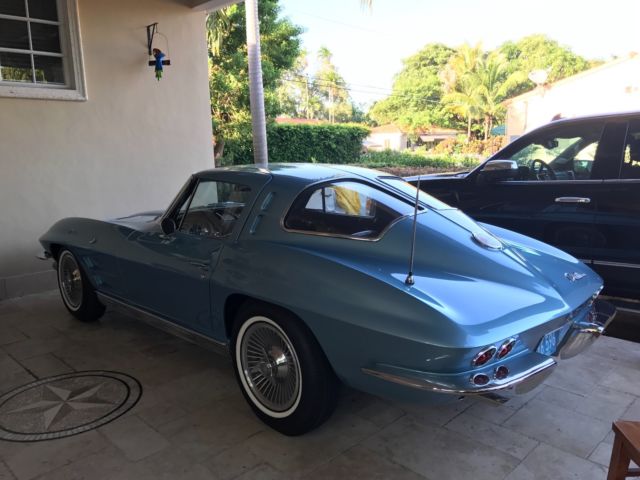 | this is a 1963 corvette split window i just finished the restoration it is silver blue with dark blue interior. the car has only driven less then 100 test miles on it. if you need any information just email me i have lost of pictures and all the receipts for the car. |