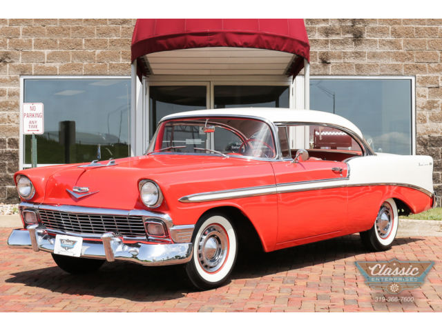 | View Our Other Listings | Contact Us | Print this listing Numbers matching Bel Air hardtop with a great owner history and solid throughoutClassic Enterprises250 Classic Car Court SWCedar Rapids. IA 52404Call Us Today(319) 366-7600Ask Us A Question Vehicle DetailsYear: 1956Make: ChevroletModel: Bel Air/150/210VIN: VC56F073683Stock Number: P1079Mileage: 88455Transmission: AutomaticEngine: 8 Cylinder. 4. 3 LExterior Color: RedInterior Color: TanTitle: Clear Description1956 Chevrolet Bel Air HardtopTri 5 Chevys are have never been out of style since they were first introduced. With clean crisp lines. stylish trim. and superb color combinations they endeared themselves into the American Automotive psyche and have stayed there ever since. This particular one is no exception to the rule. Finished in the correct and original color combination of India Ivory and Matador Red along with Ivory and Red interior trim and the original drive line this 1956 Bel Air hardtop is a very sweet ride. There is some great documentation and owner history that comes with this fine Chevy adding to the credibility and originality of the car. If you are looking for that great driving and running 56 Chevy that has a lifetime of cruising pleasure left in it. this one would be a joy to ownFeatures the original smooth. detailed 265 V8The transmission is smooth shifting Power Glide with Column ShiftThe Original Power Brakes working effortlesslyThere is a Tuned Dual Exhaust with a Mellow noteOriginal Sheet Metal Panels and Solid FloorsFinished in Mirror Gloss India Ivory and Matador RedThe interior is the correct Red and Ivory cloth and vinyl with Finger Hut clear vinyl coversThere are color keyed seat belts front and rearOriginal AM radio in the dash along with an era correct Stop Light Viewer mounted on the dashThe engine bay and trunk are detailed including mat. jack. and spareVery nice original Stainless Trim and Chrome adorn the carThe wheels are painted Steel with Full correct Bowtie HubcapsTires are like new 6. 70/15 Wide White Wall Bias PlyUnder the dash is an original Swing Out Tissue DispenserThe body panels are as straight as they comeDaytona Weave carpeting covers the floors with floor mats addedThe Headliner is Original and very niceThis fine 56 comes with a display board showing much of the history and original paperwork that came with the car Additional Photos Warranty InformationThis vehicle is being sold as is. where is with no warranty. expressed written or implied. The seller shall not be responsible for the correct description. authenticity. genuineness. or defects herein. and makes no warranty in connection therewith. No allowance or set aside will be made on account of any incorrectness. imperfection. defect or damage. Any descriptions or representations are for identification purposes only and are not to be construed as a warranty of any type. It is the responsibility of the buyer to have thoroughly inspected the vehicle. and to have satisfied himself or herself as to the condition and value and to bid based upon that judgement solely. The seller shall and will make every reasonable effort to disclose any known defects associated with this vehicle at the buyer's request prior to the close of sale. Seller assumes no responsibility for any repairs regardless of any oral statements about the vehicle. Terms & ConditionsWinning bidder must contact us within 24 hours of auction end. and make arrangements for payment at that time. A $500. 00 deposit is due within 24 hours of the auction end. The remaining balance is due within 5 days of Auction end. If no contact is made within 24 hours we reserve the right to re-list the vehicle. sell it to the next high bidder. or sell it otherwise. Make sure if financing. your financial institution accepts the year and miles of this vehicle BEFORE bidding. Please arrange financing PRIOR to bidding. Buyer is responsible for pickup or shipping of this vehicle. If you wish to have it shipped using a service. we will gladly help you with the process. or you can locate a list of shippers by doing a Google search for “auto shippers. ”We describe our vehicles as accurately as possible. All the vehicles are pre-owned and may have some minor flaws in the paint or in the interior. Some vehicles may have had some prior touch up to cover micro chips or scratches. Not all vehicles have a full set of keys. books. navigation CD's. floor mats. or other loose items. Vehicles may have some additional miles from local test drives. If you are not sure about something. please ASK. Do not assume anything not listed is included. We strive to find our customers the highest quality vehicles at the best available prices. We reserve the right to cancel any bid for excessive negative feedback. We also reserve the right to end any listing if the vehicle is no longer available for sale. Please do not bid on this auction unless you are serious about owning this vehicle. All non-paying high bidders will be reported to eBay. and a negative strike will go against the buyer as the result of an unpaid item being filed. PLEASE ONLY BID WHAT YOU ARE WILLING TO PAY. If the reserve is not met. we reserve the right to contact the high bidder to offer a second chance option. Fee and Tax Information:There is a $150 documentation fee on all transactions and a 5% fee on all credit card charges. The sales tax for the State Of Iowa residents is 5%. Make sure to call or email us after your purchase for more details at (319) 366-7600. About UsAbout UsClassic Enterprises is the culmination of over 20 years of activity on Classic Car Court. Our goal is to provide unparalleled value in classic and collectible automobiles. We strive to insure that all our customers experience a fun and enjoyable time while selecting and purchasing one of our special cars. We have continually refined our expertise at acquiring and reconditioning exceptional collectible automobiles. Our helpful staff is on hand to help with questions o