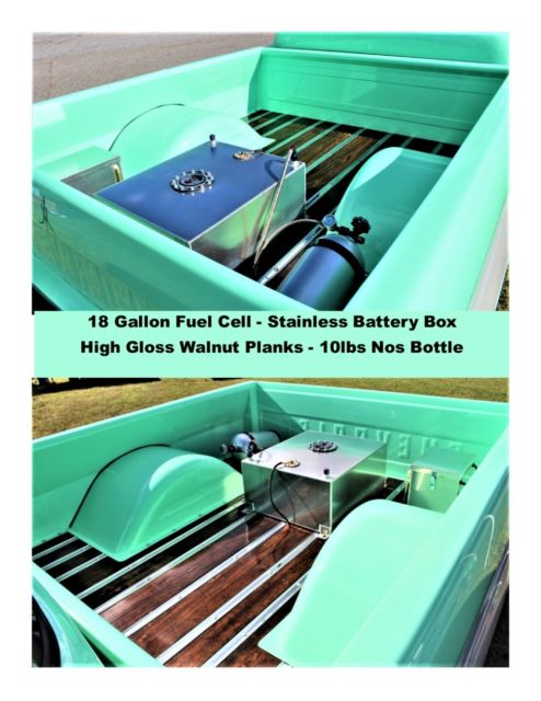 1955 CHEVROLET APACHE FLEETSIDE TRUCKProfessional Southern California Build!!. This 55 Apache is Fun, Easy and Comfortable to drive. This Apache was built with SEMA in mind, so the Attention to detail is stunning. Body off Frame, Custom Southern California Built 1955 Chevrolet Apache Verified by the N.C. Dept of Motor Vehicles North Carolina title in hand, reads 1955 Chevrolet Truck!! The Body & FrameFinished in Ultra Slick California Surf Green finish with Hand Laid artwork all done by L.A. Customs Paint and Body1955 Apache "Big Back Window" Cab1957 Apache Hood with spears1958 Apache Fleetside bedVent Window Delete on both doorsHigh Gloss finished Walnut bed with stainless steel runnersBed is fully Tubbed15 gallon stainless steel fuel cellStainless steel battery boxPowder coated frameOriginal Steelie wheels FrontCustom widened Steelie wheels in the rear with 29X18.5x15 HoosiersLate model Camaro Front suspension clipLED tail lights Drivetrain:Professionally built Chevrolet 355 CI full roller with Gear Drive CamHolley 600cfm CarbCeramic Coated Moroso Headers(NOA) Plumbed and ready "Never Charged", including Bottle, for Nitrous. Nos system is complete with carb plate, solenoids, WOT Throttle Switch, 13lbs Bottle and Steel braided Fuel delivery lines.Narrowed Ford 9 Inch rear end3:58 Gear Set 3rd memberAuburn PositractionDutchman 31 Spline AxlesB&M 700R4 Transmission built to 600hp SpecsDual Transmission Coolers Interior:Custom Built 60/40 Split seatBig Center Armrest8 Way Power adjustablePower lumbar controlsFinished in Black and Gray leather with matching Roof and Door panelsCustom Dash finished in Surf Green with ArtworkAutometer GaugesFlaming River tilt wheelB&M 4 Speed Automatic shifter Please call or text Hoss with any questions 828.275.5086 Please only bid if you intend on paying for this 55 Apache and Ask all questions prior to bidding Auction may end early if sold prior. Vehicle is also available for sale locally. Feel free to make an offer if you prefer to buy it now. CASH IN PERSON!! I AM IN ASHEVILLE, NORTH CAROLINA Will ship anywhere in the world!! Buyer is responsible for All Shipping and handling Fees and Arrangements call (828)275-5086 |