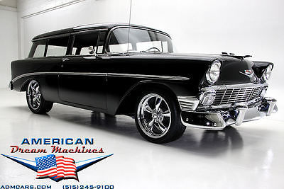 | 1956 CHEVROLET 150/210/BelAir/Nomad/Wagon 210 WAGON Vehicle Description FRESH OUT OF THE BODY SHOP AND LOOKING GOOD!!! JET BLACK 1956 HANDYMAN 2 DOOR WAGON WITH NEW CHROME ALL THE WAY AROUND & SET OFF BY GORGEOUS NEW BLACK AND RED INTERIOR . THE CAR LOOKS AMAZING ROLLING ON BRAND NEW CHROME AMERICAN RACING RIMS CALL FOR DETAILS!!!! NEW LISTING!!! Ultimate Beach Cruiser! Jet Black 1956 Chevrolet 210 2 Door Wagon With Drop Dead Good Looks. This seldom seen 2 door wagon has had all the right things done starting with the New Black base/clear paint that has been rubbed to a deep shine. Nothing looks better on Black than beautiful chrome and this one has it all. New front bumper. New grill. New hood bar. New eyebrows. New headlight bezels. New rear bumper. New tail lights. New door handles. New hood bird. The rest of the stainless has been polished and looks great. Built for show and go with a great running 283 C. I. V8 topped with an Edelbrock Performer intake and Holley 4bbl. carb. Large capacity aluminum radiator keeps things running cool. March pulleys and chrome dress up kit makes the engine bay sparkle. The floor shifted 3-speed manual transmission sends power to the 12 bolt rear with cruising gears. The interior is NEW and is stunning. Carpet and sill plates are New. All door handles. indow cranks and bezels are New. The iconic dash looks great with clear and bright instrumentation. The undercarriage is super solid and has been painted chassis black for a clean appearance. New 20" rear and 18" front Rev polished chrome wheels wrapped in New Hankook performance tires really sets this machine off. Our #1 Goal at American Dream Machines is to make our customers happy with the cars we sell. This is not an easy goal to achieve when selling 40. 50 and 60 year old cars. We highly recommend that ALL CUSTOMERS call our staff and have very detailed discussions regarding overall condition of any classic car they are considering buying. We are located in the center of the Heartland in Des Moines Iowa. Our staff has midwest values and they will make every effort possible to represent our customers best interests and accurately describe the cars we sell. All older cars have older parts. If they had all new parts. they would be new cars ;-) YES. ALL OF OUR PICTURES ARE REAL. ALL THE WAY AROUND!!! Our pictures are taken in our professional photo studio for the best possible lighting and image accuracy to give our customers the most accurate representation of our cars on all sides. (((PLEASE CALL FOR DETAILS))) 515-245-9100 (((80 MORE VEHICLES IN STOCK))) American Dream Machines is located in a 41000 sq. ft. historical Packard Dealership and is one of the largest full service classic car dealerships in the Midwest. We specialize in American Muscle cars with integrity. None of our cars are consigned. All of our cars prices are always listed on our website to show the values of the cars we sell. We usually have at around 80-100 cars in stock at all times. Please call (515)-245-9100 and we will be happy to tell you about our cars. VIEW ALL OF OUR CARS with more pictures at WWW. ADMCARS. COM Vehicle Specs Engine: 8 Cylinder Transmission: Manual Engine Size: 283 Drivetrain: Rear Wheel Drive Color: BLACK Interior: RED/BLACK Doors: Please Call Stereo: Please Call Mileage: Call for Mileage Stock Number: 3115 VIN: UB565111988 Warranty Info: Please Call Vehicle Options Contact Information This 1956 CHEVROLET 150/210/BelAir/Nomad/Wagon 210 WAGONcan be seen at: American Dream Machines 1500 Locust St. Des Moines. IA 50309 Contact Tom Clarken Today at (515) 245-9100 Additional Photos Terms and Conditions Bidding and Purchase All sales are final so please feel free to do a pre-buy inspection. Placing a Bid: Your bid constitutes a legally binding contract to purchase this vehicle. Please do not bid if you're not seriously interested or financially able to purchase this vehicle. Please read eBay's User Agreement American Dream Machines reserves the right to: Obtain and verify the registered information of all users who bid on this auction. Cancel any and all bids at our discretion. or end the auction early if necessary. Bidders Age: You must be 18 years of age or older to Bid. Special eBay Bid Retraction Rules: Please read eBay's "Retracting a Bid" If you place a bid before the last 12-hour period of the auction. you will not be allowed to retract that bid during the last 12-hour period of the auction. If you place a bid during the last 12-hour period of the auction. you will be allowed to retract the bid for exceptional circumstances but only if you do so within one hour after placing the bid. Funds & Financing Buyers Inspection: American Dream Machines has done our best to disclose all information known about this vehicle for auction. American Dream Machines welcomes a buyers inspection. If you plan to have a buyers inspection. please make sure you inspect the vehicle prior to the auction ending. Inspection fees if any are Buyers responsibility. Representations and Warranties made by seller: This vehicle is being sold "as is". Manufacturers warranties may still apply. Extended warranty may be available. No representations or warranties are made by seller. nor are any representations or warranties relied upon by bidders in making bids. Taxes and Registration fees: Out of state buyers are responsible for all state. county. city taxes and fees. as well as title service fees in the state that the vehicle will be registered. All taxes and fees must be paid in full in order for vehicle to be titled and registered. Title Information: Vehicles titles may be held by banks or lenders as collateral for loans. In many cases there is a delay in receiving the original instruments up to 21 days from the time we pay a vehicle off. While we usually have all titles in our possession at closing. there are occasions where we may be waiting for them to arrive. If payment is made by cashier's or personal checks we will hold all titles f