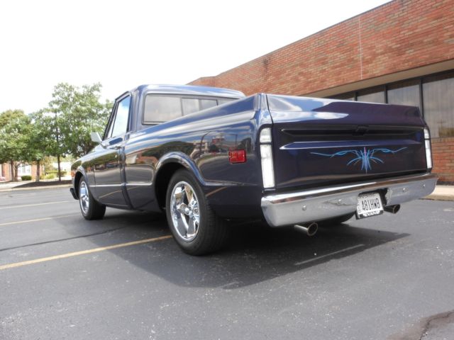 Body off Rebuild Frame painted black. New stainless gas and brakelines as well as exhaust. 355 roller motor with comp CAM, Air gap and holly Carb. 350 transmission w shift kit. New 355 POSI rear end. Classic gauges, 18 Gal gas tank mounted below bed. Power FWDB. Power steerin, 17 x 8 rims. New radio with speakers and AMP. IF you can any questions or an offer please call 440-669-3542 |