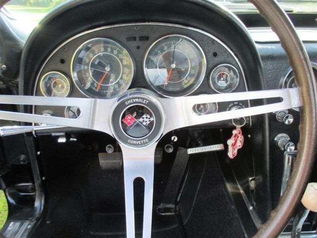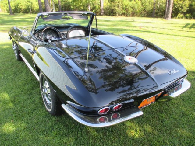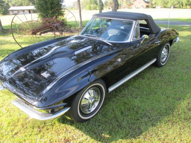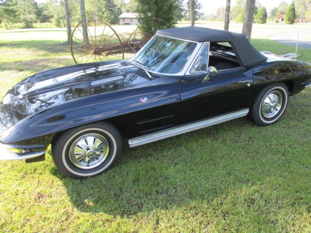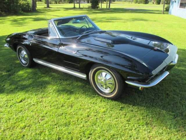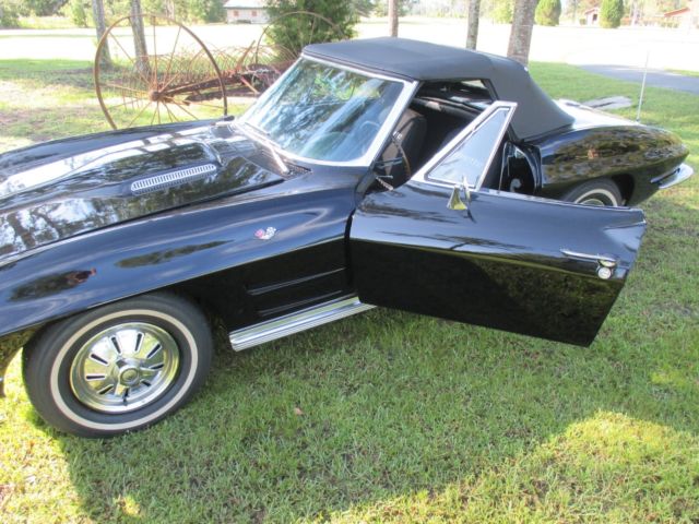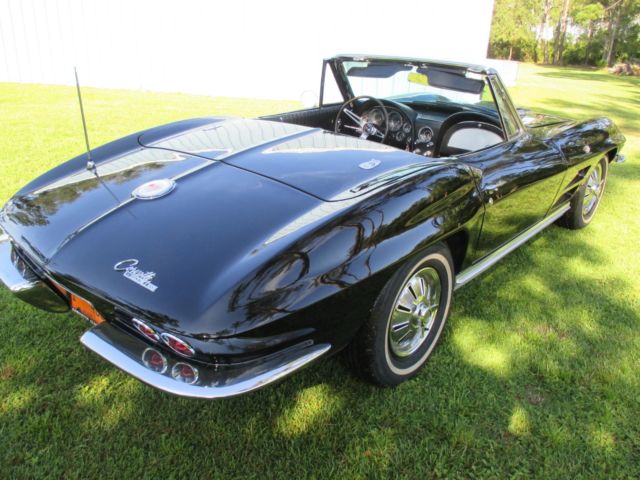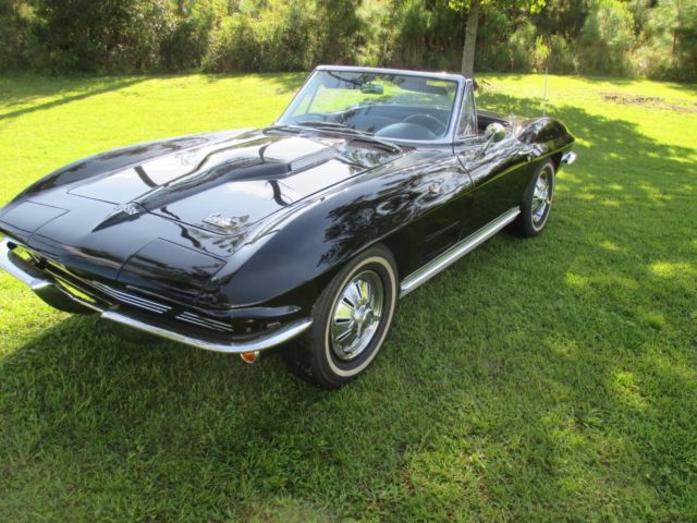 1964 Corvette Stingray convertible, 327 cubic inch, 365 horsepower, with a Muncie 4-speed. The 4-speed has an old-school style Hurst shifter. Engine block, heads, intake, carburetor and air cleaner are correct as is the transmission. Front end components have been replaced - meaning bushings, etc. The black paint, color code 900AA, is beautiful and shiny. The car, in my opinion, has never been wrecked and is straight on both sides. The paint is not perfect and appears to me might have been repainted several years ago. The Corvette has new seat covers and carpeting. The interior code is 491CB meaning black and white. BUT, the seat covers were replaced as all black. AM/FM radio and clock do not work. Tachometer registers but not accurately. The hood is a 1967 Stinger hood that the previous owner thought looked better than the '64 hood, which it does, but doesn't belong on the car. Tires are new, brakes have been reworked, and it starts up and drives wonderfully. As I've said, most items are number matching. Some smaller items are not, but not hard to find or expensive to replace. The Corvette is for sale locally. I am available for any questions concerning the car. The only trades I would consider accepting would be a 1955, 1956, or 1957 Chevrolet. Engine suffix numbers appearing on the passenger side pad read as follows: 4108952 FOI03RB. Mileage is not correct. This '64 Corvette is located in North Florida. On Aug-13-17 at 06:26:15 PDT, seller added the following information: CORRECTION: The hood is a 1965-66 Big Block hood. On Aug-16-17 at 12:34:46 PDT, seller added the following information:CORRECTION: The last digit on the engine numbers should be an "E". F0I03RE