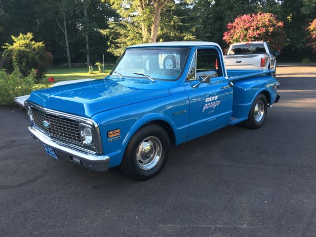 Up for auction is a 1972 Chevy C-10 Step Side. Ipurchased this from the previous owner on 11/15 with approx. 975 miles on his restoration. I have all his pictures and receipts of what he did to the Truck. I also have pictures and receipts of what I have done to the truck in the last 2 years after purchasing it.I have put approx. 500 miles on the truck. Things I done to the truck after purchasing 11/15 1. New smoked windows sides and back front windshield id tinted 2. Entire truck has all new suspension from CCP, Lowered 3" in front and 4" in rear, new disc brakes Power booster, master cylinder, brake lines front and rear, new springs front and rear, new tubular trailing arms, new front and rear sway bars, new shocks front and rear, New seals in rear end. 3. Installed amild cam in themotor Has a nice lope. 4. Replaced the fullexhaust system from Headers back, Installed New Flow Master 40's and installed electric cutouts so you can run open headers, these dumps out behind the doors, regular exhaust dumps out behind the back wheels. 5. Purchased Rally Wheels Very hard to find, new trim rings and hub caps. 6. Replaced new stock front grill with new Chrome Grill. 7. New headlights with turn signals built in the light, added fogs lights, install new Seat belts, install new Headliner & Dash pad to match interior, new chrome defrost outlets in dash. Replace Stock exterior running lights with upgraded ones like off the Cheyanne Truck. 8. Put polished S/S Nuts and Bolts and Washers in the bed of the truck. 9. Had the Patina Painted "Dads Garage" on the side off the truck,had the roof of the truck painted White to make it a two Tone, Painted Inner Fender Wheel Wells Painted Gloss Black (Looks Great) 10. Replaced Dash Gauge cluster with new white Gauges with built in Tach and Vac also. 11. Made custom Polish Stainless Glove Box Cover (one of a kind) 12. Replace Valve covers, and Carburetor breather. Summit ARP Engine Bolt kit, Upper & Lower Radiator hosed Flex /Chrome 13. New Battery, New Ignition switch. New Motor Mounts, New 6-blade fan, New Fan Clutch, 14. New re-built steering box, and rag joint, Truck came with New Vintage Air- (Very Cold), Rebuilt Trans, new 140 Amp Alternator, new motor 350/300hp (Have papers on this), New chrome tilt steering, I estimate the truck now has about 330-350hp. I have well over $35k invested in the truck. My loss is your gain... Truck is located in Harwood, Maryland, about 20 minutes south of Annapolis. For more information please call Jerry at (410) 867-7615. Thanks for looking. |