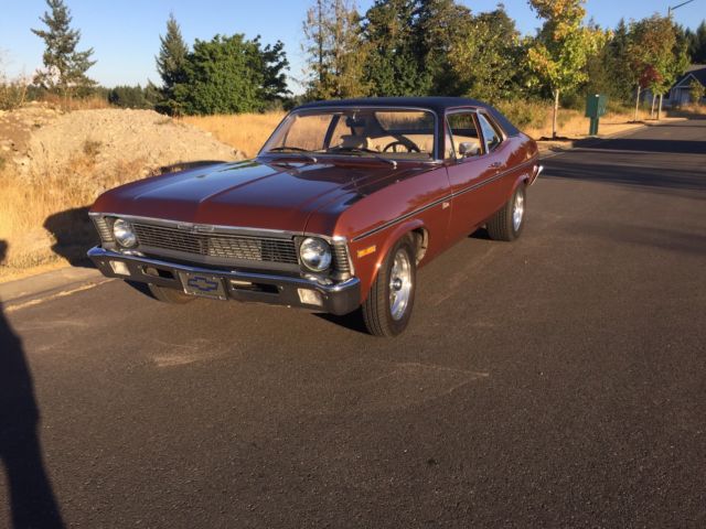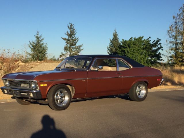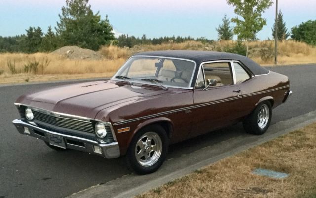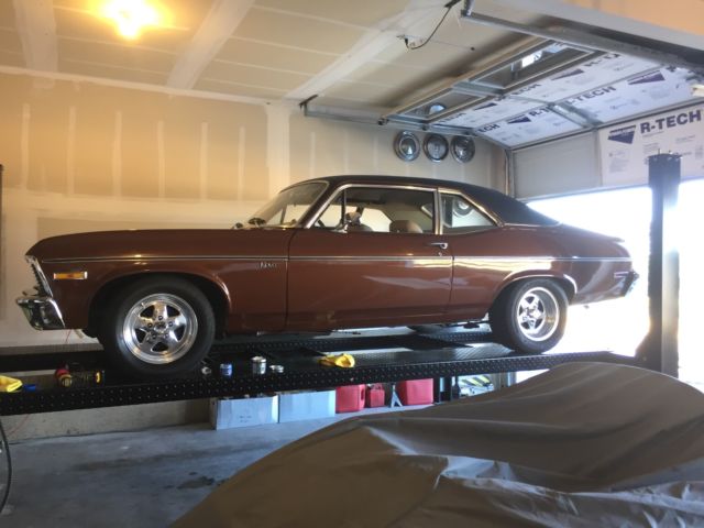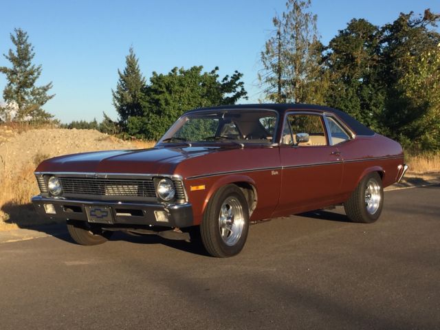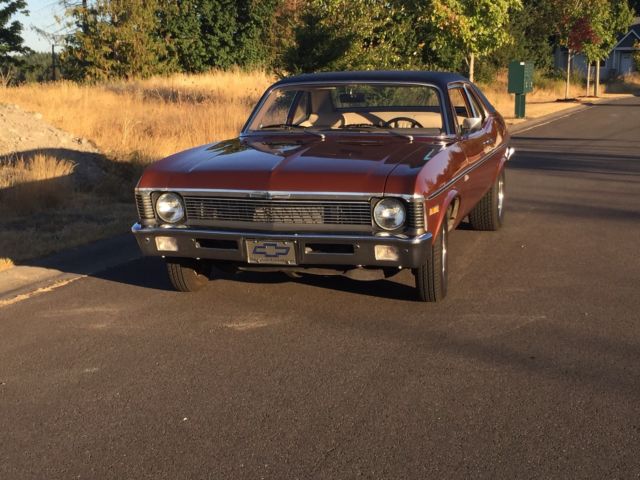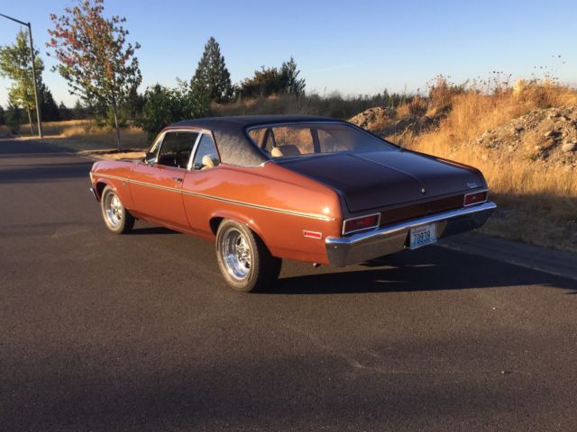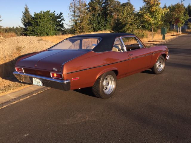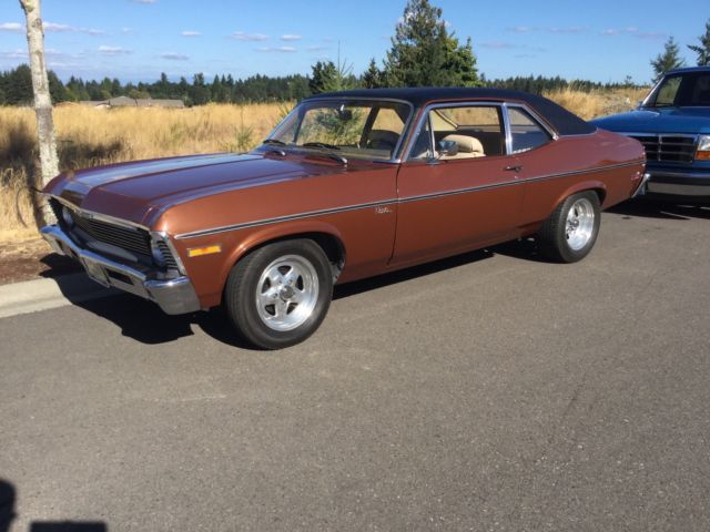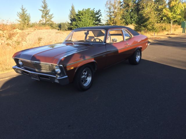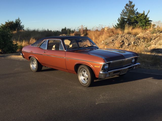Guys, here is a beautiful 1971 Chevy Nova 350 V8, 350 Automatic with shift kit, 12 bolt posi rear, power steering, manual brakes. Has small cam, new exhaust from manifold back. This car has been gone through recently new factory correct classic copper iridescence paint, new black vinyl top, new carpet, seat are professionally re-ulphostered, new front and rear glass, new tires, new weld wheels, new brakes, new radiator, before carpet was installed floor treated with por 15 and dyno matted. Trunk is treated with poor 15 and solid as well. there is probably more that I am missing but this is a great driving car nice and tight no rattles plenty of power will spin tires through the gears if you desire. Very clean not a rust bucket. The doors don't sag and close solid. Truly if it was a different color this one might not be for sale. If your looking for a very clean car look no further. Bid it to win it I have no reserve on the car. I will add a you tube video of the car running. Great sounding exhaust. Bumper jack is still in the trunk in good condition. The stock steering wheel will be included as well as the rain drip rail moldings. I also have about a quart of paint left that goes with.Ther has been a ton of work done to this little bow tie. Here Is the link for the video of this beauty running.https://youtu.be/10VdvYZ3wHA