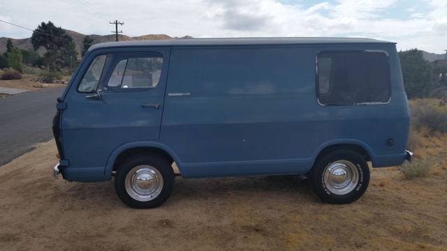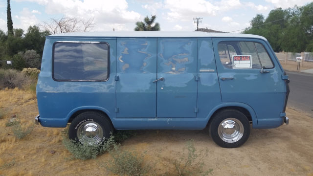 This is a 65 Chevy Van with a flat front window. Not many of these around! Body is straight. Side windows was added by previous owner. interior is clean. Needs paint. Runs strong was daily driver. Now mostly sits. 3 on the tree shift. History- Van was originally owned by Roy Burris of Roy's Cafe in Amboy California on route 66. His wife used it to clean the rooms. This van has never left the desert. Questions text 760-464-1048. |