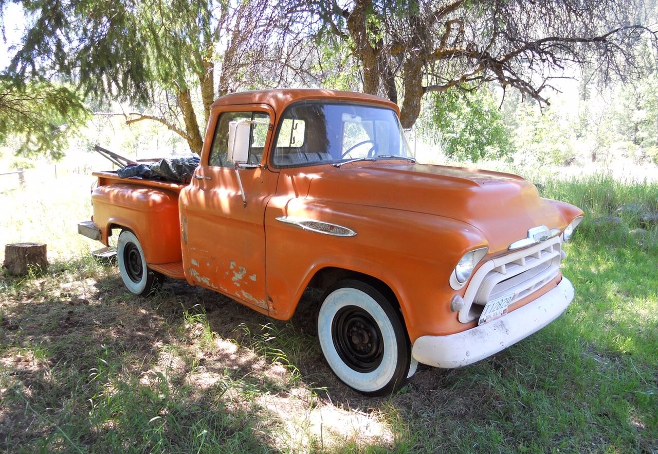 | This is a very sought after 1957 chevy shortbed pick up. I think it would be a very easy project. for just about anyone!Until recently it has been in covered storage for the last 25 yrs I just bought this truck and do not know a lot about it. I do have a few that I am currently doing so I have put this one 4-sale as is. Let me know if you would like to view it. /p>The truck has 235 six with a 4 speed manual trans I have not tried to start it. looks complete except for battery The body is in good shape for this year of truck with very little rust. appears to have been painted in the 70s Has damage on lower passenger door which extends into the cab corner and step is bent looks to have been repaired after the truck was painted but not very wellRolls well but will need brake work. wide white wall tires on truck do not come with it! (they are going on a 58 fleetside) Truck will come with roller wheels/tiresPlease ask questions before bidding $500. 00 nonrefundable deposit due within 24hrs and balance within 7 truck and title will not be released till all funds have clearedbuyer to arrange and pay all shipping Thanks |