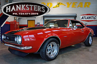 DescriptionClassic car insurance starts around $25/mo for a $25. 00 vehicleStock # 67CAM7556Garnett Red 1967 Chevrolet Camaro SS350 StyleExteriorGarnett Red exterior with Black Z-StripesSteel 2 inch cowl induction hoodFront air dam and rear spoilerSS350 front grille emblemSS front fender emblemsSS350 gas cap15 inch Chrome Cragar SS wheelsBFGoodrich Radial TAs 205/60R15s on the front and 235/60R15s on the rearInteriorBlack deluxe interiorFront bucket seatsFactory dash with 120mph speedometer and fuel gaugeAftermarket water temperature gaugeFactory steering wheel with SS350 horn buttonFactory 4speed center consoleHurst 4speed shifterFactory AM radioDriveline and Running Gear327ci Small block Chevrolet engineMuncie M21 4speed manual transmission12-bolt GM differentialPower steeringNon-power front disc brakesRear drum brakesFactory stock suspensionAdditional OptionsChrome air cleaner and valve coversQuadrajet carburetorCast intakeCast headsExhaust manifoldsDual exhaustTailpipesFactory air car but is not hooked upHeater lines are hooked upFREE SHIPPINGHanksters offers Free Standard Shipping on every vehicle in stock to all of our customers within the U. S. Offer only applies to full retail price offers to customers within the 48 Contiguous States. Affordable Financing and Worldwide Shipping Available. For questions. please email or call. We have several classic cars in stock. please contact us directly for the most current list of inventory. Hanksters. its agents or employees shall not be held liable to anyone for any errors. omissions or inaccuracies under any circumstances. The entire risk for utilizing the information contained on this site or linked to this site rests solely with the users of this site.
