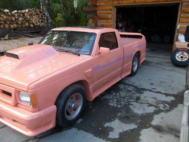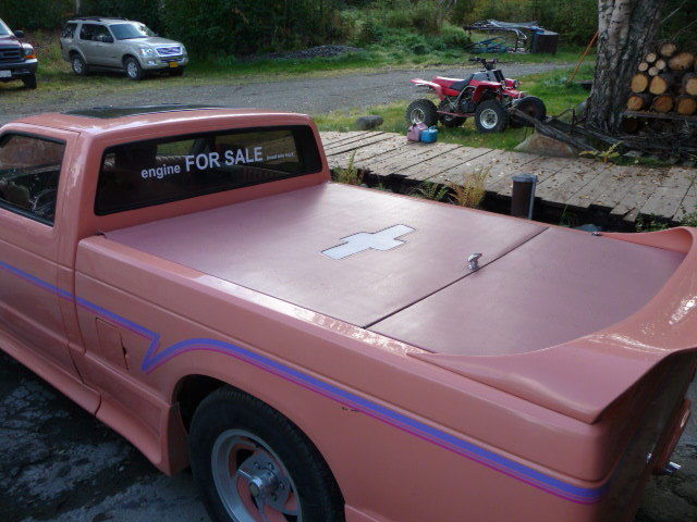 | This is an awesome custom S-10 has placed 1st in car shows. It was constructed in Reno Area in 1990s. Our son bought it about 4 years ago in Alaska. You can view it on You Tube at phatalaskan. com The Pink Beast. it has been chopped 3 inches . owered. shaved. Solenoid door openings. Tuck and roll interior and sides of pickup beds. Diamond plate tonneau bed cover with vinyl cover with Chevy Bowtie emblem. the mill is a 406CI Tunnel Ram . Dual quad Holleys. Edelbrock manifold. Stainless headers. utomatic. Factory Air. ower brakes. ower windows. power locks. electric doors . any billet accessories. ustom wheels. round effects. olded in tail gate. This looks to have been a frame off build I replaced the dual point accel distrubutor and coil with a solid state HEI distributor igintion system and new Champion spark plugs and new ignition harness. All removed parts go with the truck. We trailered it down this past fall from Alaska for easier access for a buyer. |