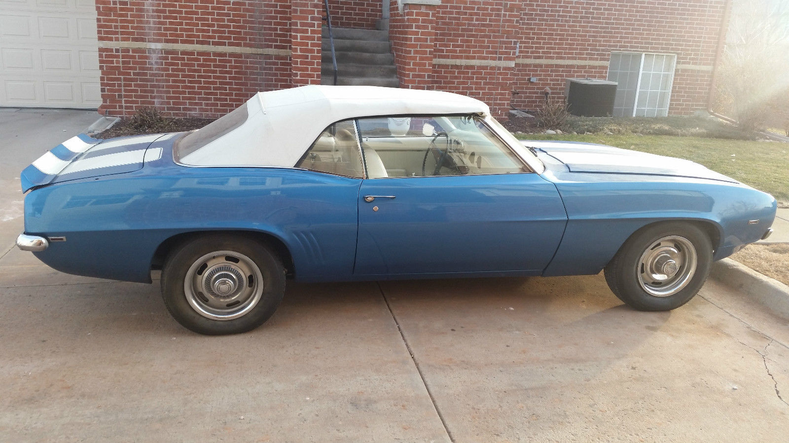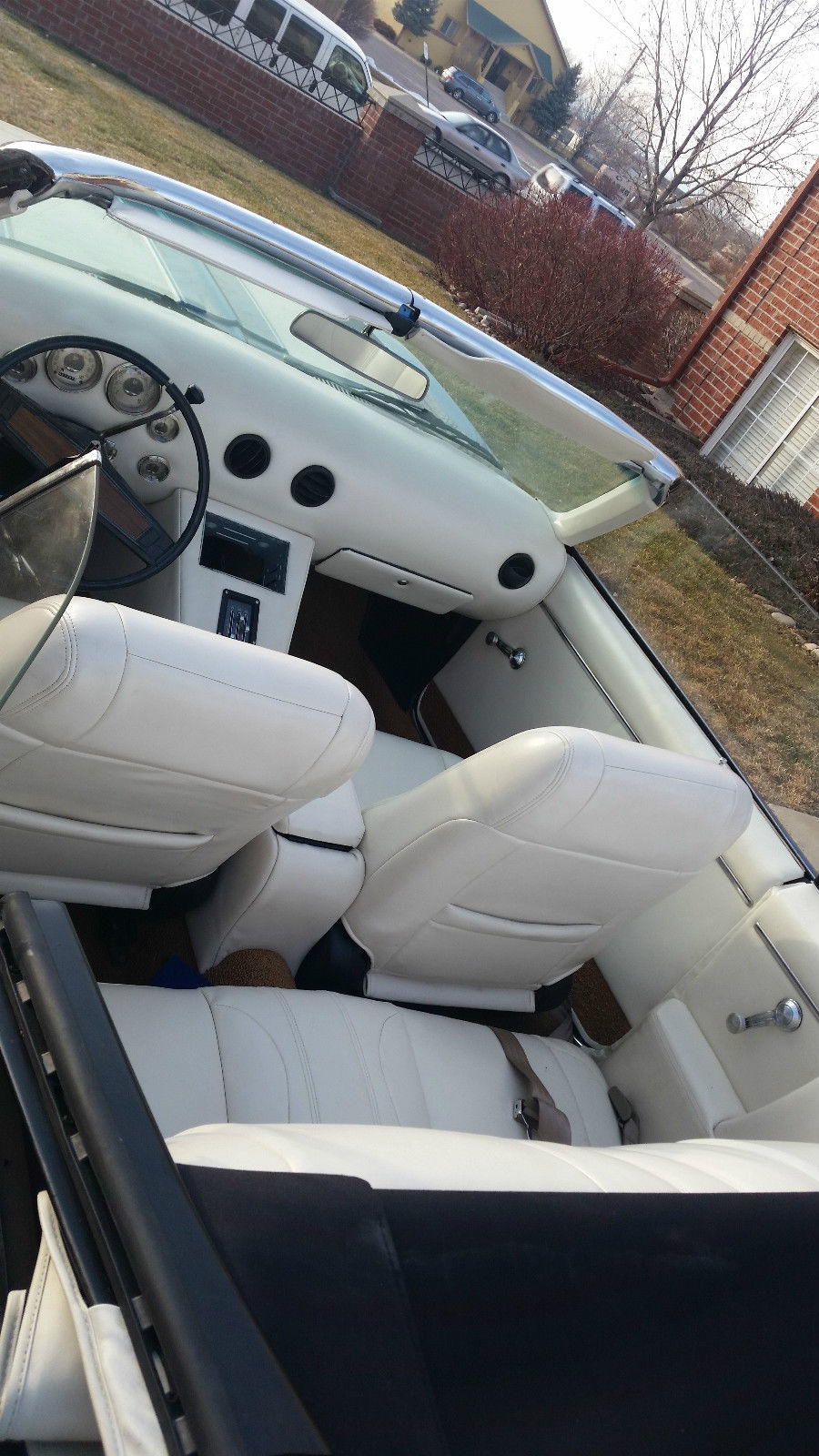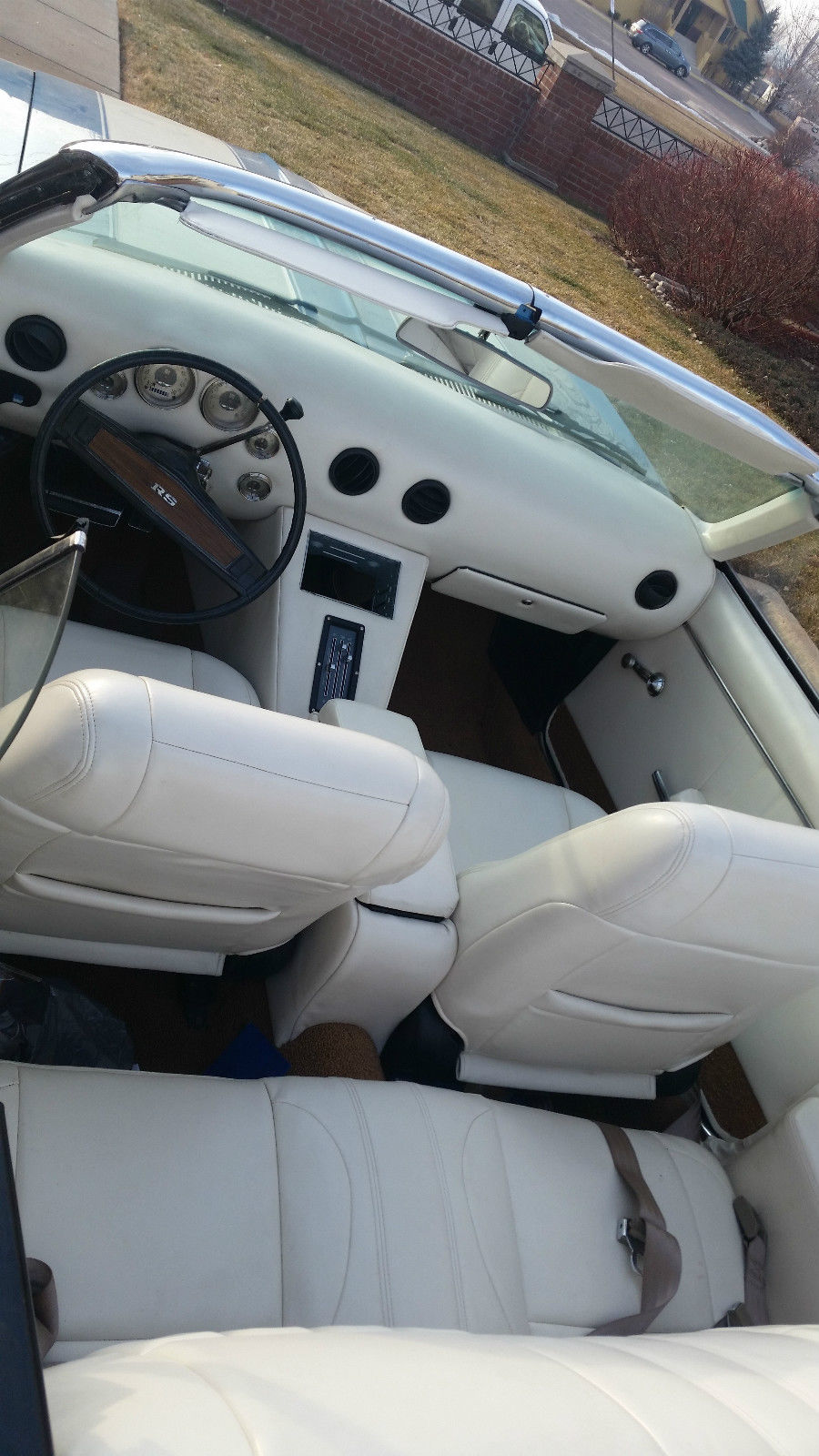 This car has the original engine and transmission. I recently installed a new carburetor and a larger radiator. It has had a recent oil change as well. I did re-do the interior as when I purchased it there was no interior and I installed power seats. Someone can convert it back if they want to. It does have the original steering wheel and the original fixtures for the heating/air conditioning controls as well as the box that holds the radio and the glove compartment box. The car has had a new paint job. The frame for the convertible is original but the rag top is new. It has a new front windshield and as far as I know the rest of the windows are original or are the ones that came with it when I purchased it. It has hideaway lights. I have owned it for seven years and have done all the work to restore it. The items that are remaining are to finish the trunk and a new exhaust which are minimal items. It does have air conditioning although it is not connected at this time. It's a convertible and I haven't needed to use the air conditioning in Colorado when I have driven it. I drive it maybe three times in the summer and never in the winter. It is garaged at all times. It also has Rally Sport Wheels.