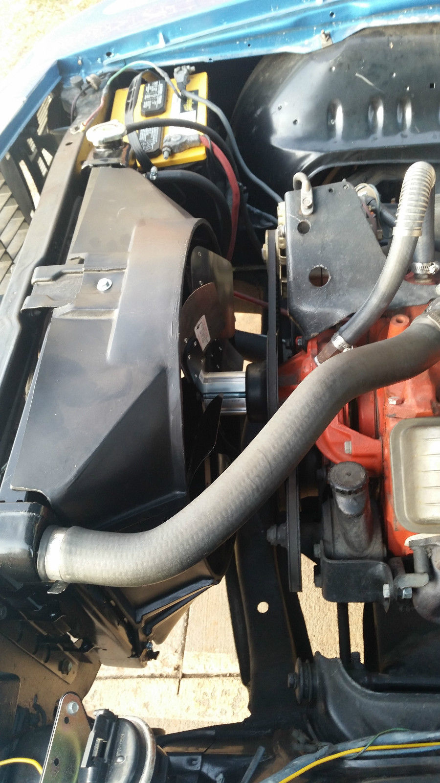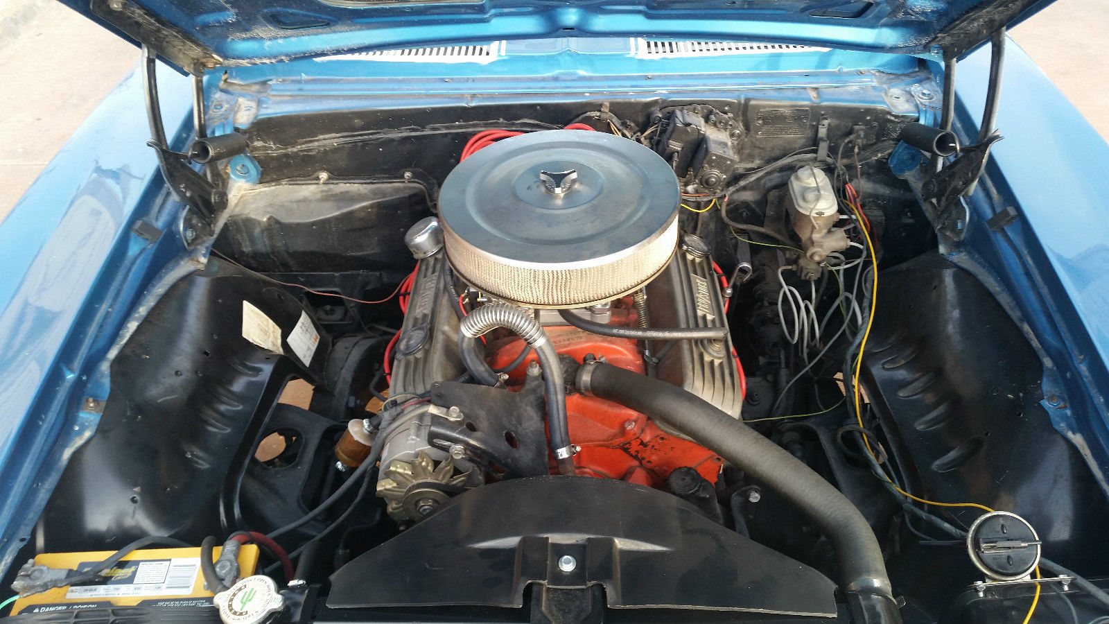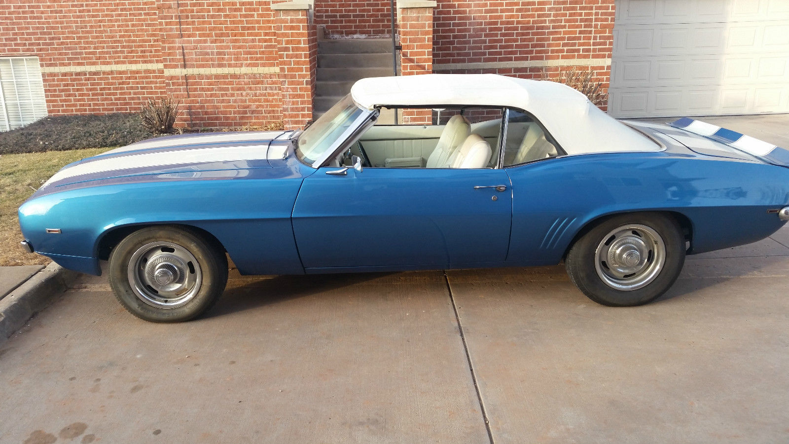 This car has the original engine and transmission. I recently installed a new carburetor and a larger radiator. It has had a recent oil change as well. I did re-do the interior as when I purchased it there was no interior and I installed power seats. Someone can convert it back if they want to. It does have the original steering wheel and the original fixtures for the heating/air conditioning controls as well as the box that holds the radio and the glove compartment box. The car has had a new paint job. The frame for the convertible is original but the rag top is new. It has a new front windshield and as far as I know the rest of the windows are original or are the ones that came with it when I purchased it. It has hideaway lights. I have owned it for seven years and have done all the work to restore it. The items that are remaining are to finish the trunk and a new exhaust which are minimal items. It does have air conditioning although it is not connected at this time. It's a convertible and I haven't needed to use the air conditioning in Colorado when I have driven it. I drive it maybe three times in the summer and never in the winter. It is garaged at all times. It also has Rally Sport Wheels.