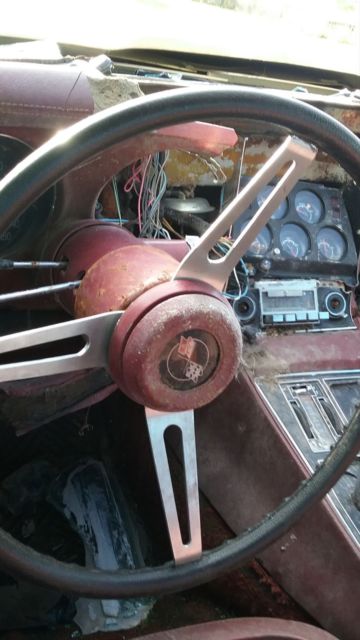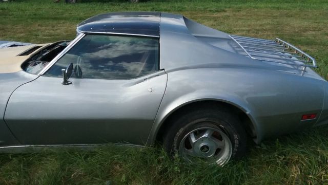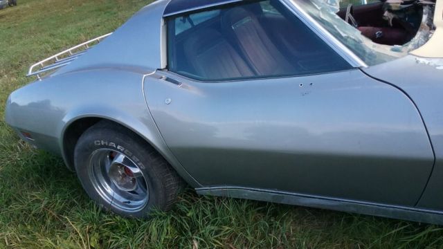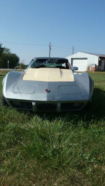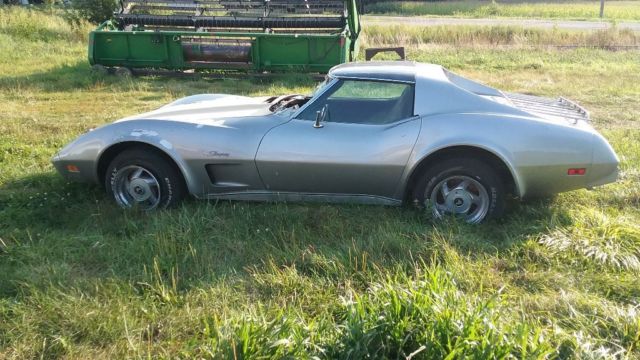 | Up for bids is a barn find 75 stingray corvette has t tops this is a numbers matching car has L48 option 350 ci auto trans car had a fire on top of engine burned top of dash and windshield will need dash replaced comes with a used dash and have another wiring harness for it would be a great car to restore |