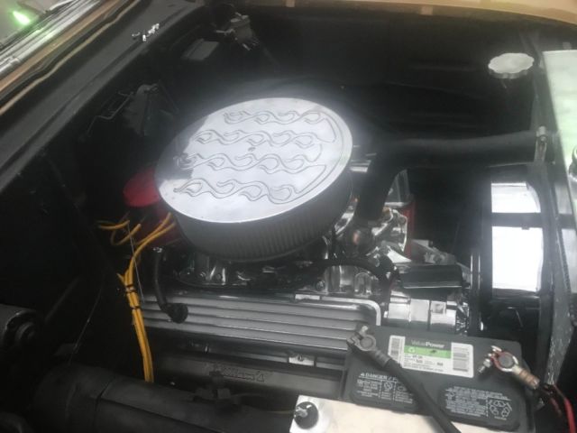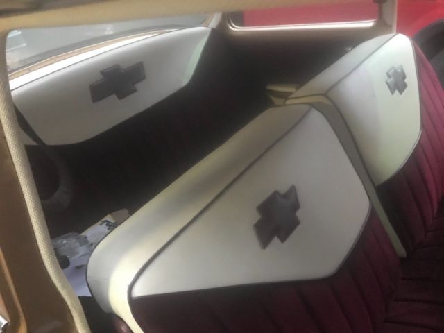 | Has brand new 350 chromed out with a built 350 turbo re done inside white and burgundy with the Chevy simbols car is in amazing shape a great eye turner. Have hood put it back on after pic were taken. 27500 obo |