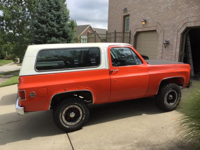| 1979 K5 Chevy Blazer. Many new parts including a newer crate motor with a small cam. New dog house new doors new grill new hood and new doors as well. Has some rust spots but I do have the new panels to be welded on and new molding for around the doors. There's no carpet currently in it And you can see the floors are solid. The transmission has a leak but I was told it was a rebuilt transmission when I bought it. It has new brakues new tires and rims with less than 500 miles on the tires. Runs and drives fine just need some new panels and new paint job. |