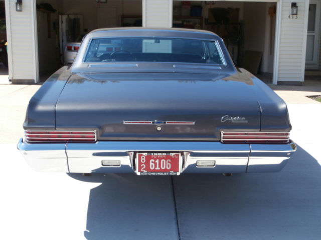 | I am selling my 1966 Chevy Caprice Sport Coupe that is in very good condition, this was a total frame off restoration. 396 punched out to a 402 with a 2 speed power glide tranny backed up to a 12 bolt posi rear end with 373 gears. It has bucket seats with a floor shifter. this car has had everything done to it from inside to outside. I have a ton more info about the car if you are really interested in it . It is a real head turner as I get all kinds of positive feed back about it and have won some high end car shows as well. |