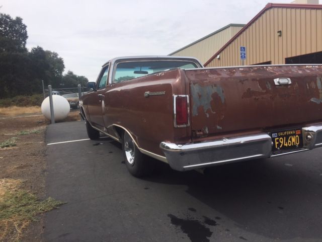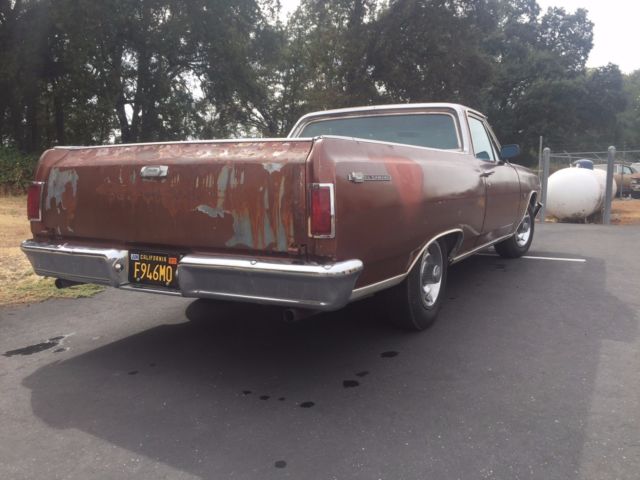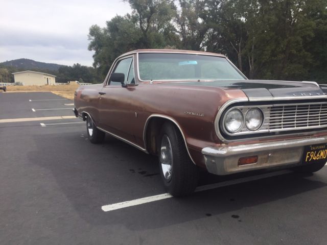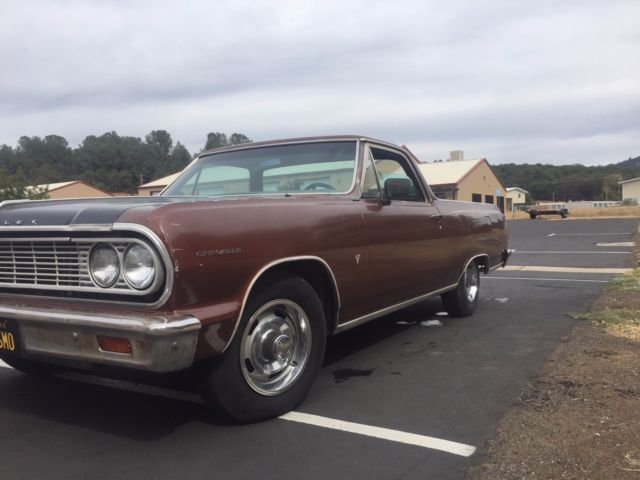 | I have a 64Chevrolet El Camino car or truck what ever you want to call it has new gas tank, sending unit, fuel pump, water pump,coolant, plugs, cap and rotor, hei distributor, plug wires, dash bezel, speedo, interior, windshield, and a rebuilt carb. The motor is a 4 bolt main 67 350 300hp with FI heads from the same era. The transmission is a turbo 350 the car has 14" rally wheels and has brand new black/yellow plates from California |