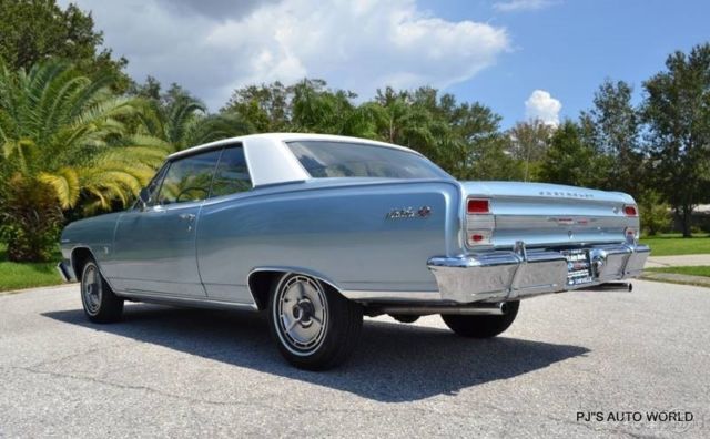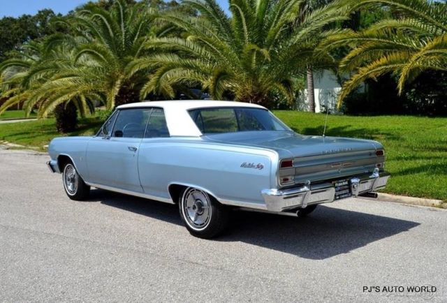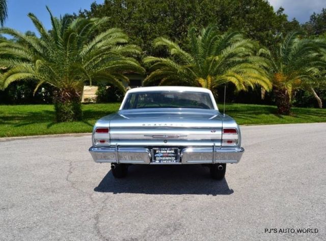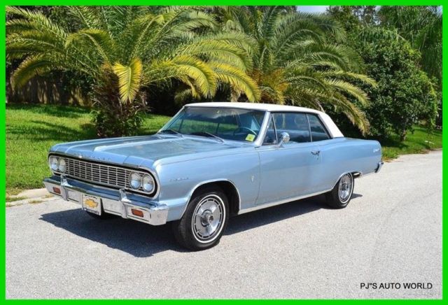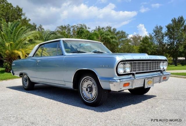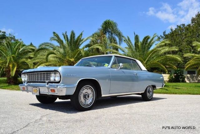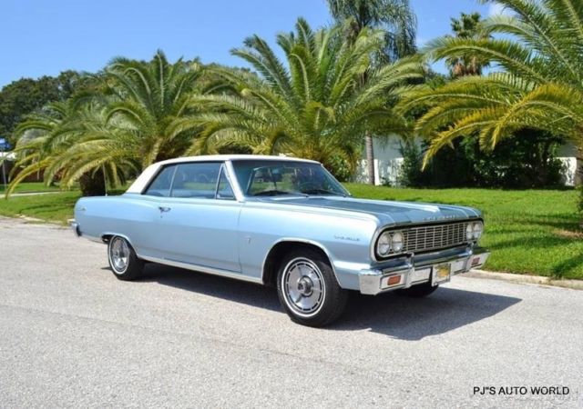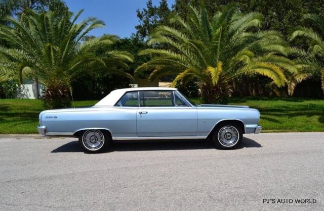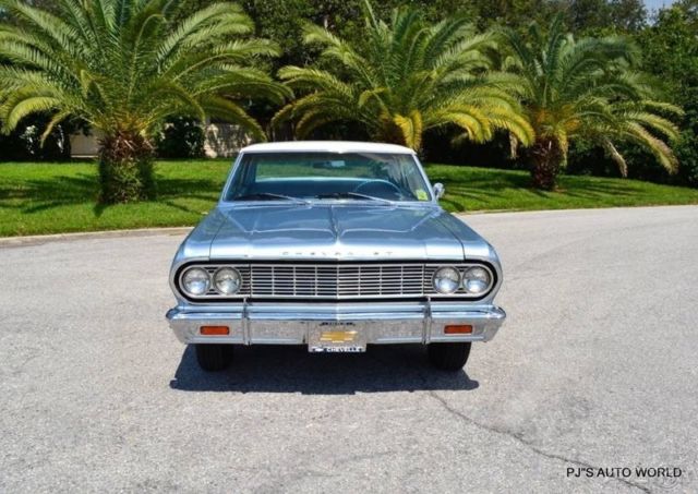1964 Chevrolet Malibu SS For Sale. Correct JG 283 cubic inch V8 engine, 4 barrel carburetor, dual exhaust, automatic transmission, power steering, updated A/C with Sanden R123a compressor, power brakes, 14"Â factory steel wheels with radial white wall tires, silver blue exterior with accenting white roof, drivers chrome sport mirror, bucket seat interior, center console, tilt steering column, AM radio. This 1964 Super Sport is highly optioned and a rare find, don't miss this beauty!!! Price $34,900 FUN FACTS: The Chevelle was intended to compete with the Ford Fairlane, and Plymouth Belvedere, and to return to the Chevrolet lineup a model similar in size and concept to the popular 1955-57 models. The Chevelle's 115-inch (2,900 mm) wheelbase was the same as that of the 1955-57 Chevy. Two-door hardtop coupes, and convertibles, four-door sedans, and four-door station wagons were offered throughout the entire run. In line with other Chevrolet series, the two-door hardtops were called Sport coupes. Four-door hardtops, dubbed Sport Sedans, were available (1966 through 1972). A two-door station wagon was available in 1964 and 1965 in the base 300 series. Station wagons were marketed with exclusive nameplates: Greenbrier (previously used with the Corvair based vans), Concours, and Concours Estate. Six-cylinder and V8 power was offered across the board. Chevelles were also assembled and sold in Canada. While similar to their Stateside counterparts, the convertible was available in the base Chevelle series, a model never offered in the United States. The Chevelle was the basis for the Beaumont, a retrimmed model sold only in Canada by Pontiac dealers through 1969. Originally conceived as an upsizing of the Chevy II with a unibody platform (similar to the Fairlane and the full-size Chrysler B-platform of the same era) which originated with the XP-726 program, GM's senior compact A-platform used a body-on-frame construction using a suspension setup similar to its full sized automobiles with a 4 link rear suspension (the differential has 4 control arms which are attached to the frame with rear coil springs sandwiched between the differential and spring pocket - this design was used with the B platform vehicles and later used by Ford Motor Company with its FOX platform automobiles).