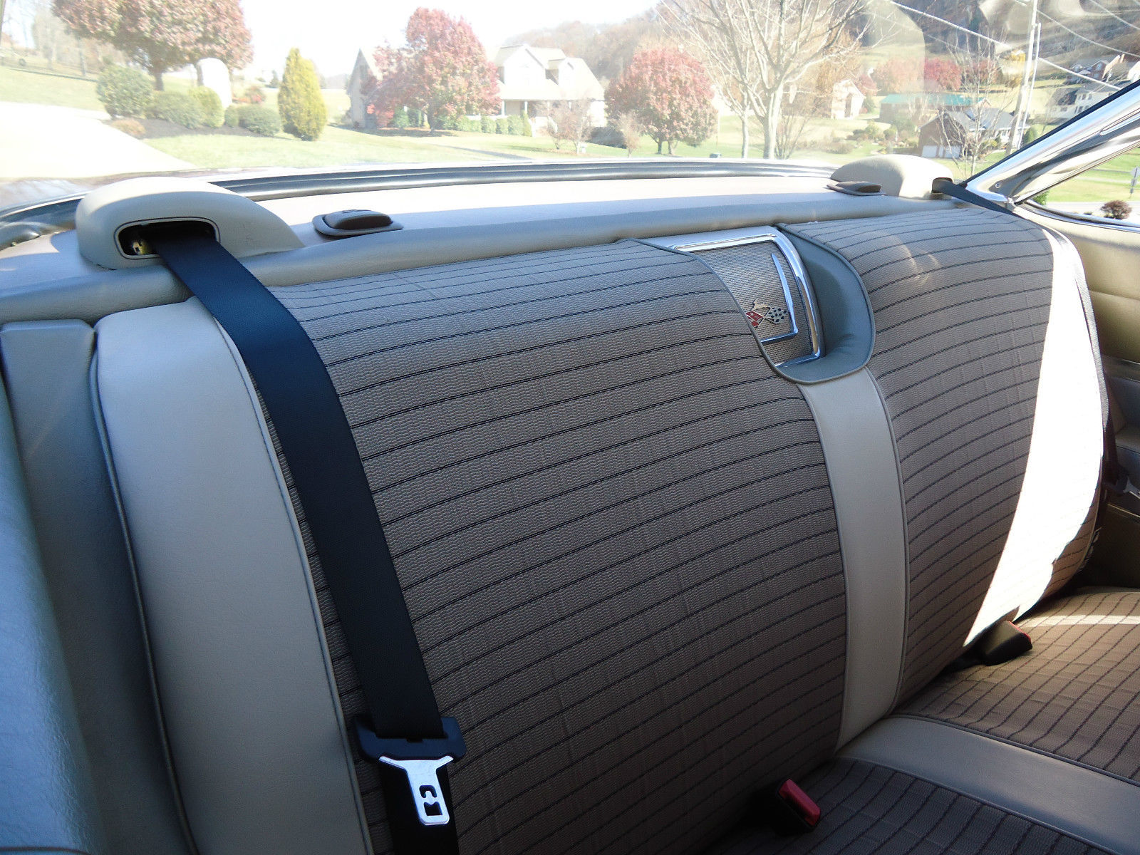 | Off the frame restoration. Went with original two tone paint colors. fawn interior with basketweave headliner. NV car. no rust and no metal replacement or patching. Tried to make car look as stock as possible right down to the hub caps. Under the hood is an LS2. 6. 0 electronic fuel injected V8 engine connected to a 4L60E automatic transmission with a B&M floor shifter. This was accomplished by using motor mounts from JEGS that moves the engine forward 1 3/4" and eliminates any cutting of the firewall or floor pan. Everything is new. fuel system. brake system. complete wiring. chrome. etc. Shoulder harness type retractable seatbelts were added to the front and rear. Have over 51k invested. The original complete 283 cu. in. V8 engine. power glide automatic transmission and steering column with the shift is included. Happy bidding ! |