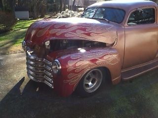 This 1951 Chevy GMC truck is great running with a 4. 3 V6. It sits on a Chevy S-10 chassis. rebuilt front end last yr (bushing & ball joints) and has new shocks. It has been chopped. shaved door handles. S-10 gauges. Also has ABS Brakes. power steering. power windows & doors. disc brakes. Aftermarket aluminum radiator w/ black magic cooling fan. The truck has custom frenched 49 Ford tail lights w/ lee bubble lenses. roll pan w/ frenched back-up lights & license plate. steel bed floor. gas filler is in the bed and the tank is under the bed not the cab. The stereo is hidden behind the ashtray. 2 roof mounted speakers. 8 in Bazooka Tube speaker behind passenger seat. all glass is good. it is a very dependable ride. and I would drive it anywhere. I left the A/C compressor on the engine so it should be easy to add heat & air. truck carries about 40psi oil pressure. I reserve the right to end the auction at any time. If you have any questions. call (404) 797-1262. Phone calls are preferred for faster. better and direct communication. $500. 00 deposit is due upon sale. The rest of balance should be received in 7 days. Cash sale or bank transfer only. The vehicle can be picked upped or shipped. but is the responsibility of the buyer. Storage is available if necessary. No warranty and no returns. Or email lbcheek@att. net. thanks happy bidding!!!