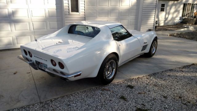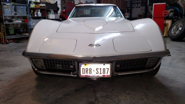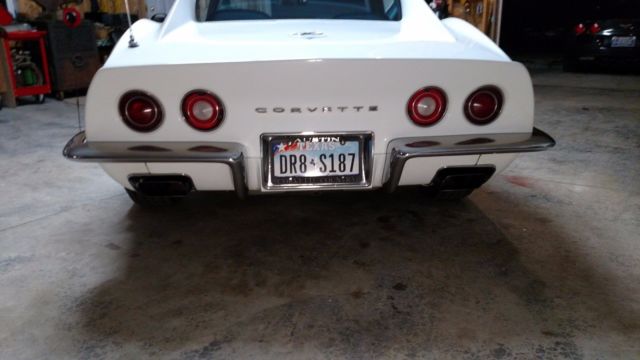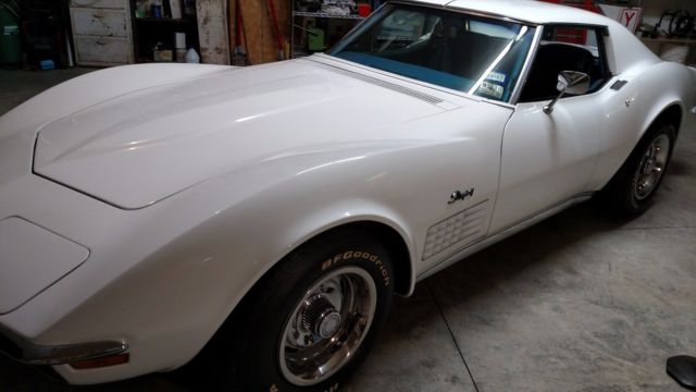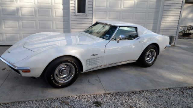 1970 Corvette T-Top 350 4 Speed. VERY NICESurvivor, extremely well cared for.White, very unique blue interior, some fading as the interior is original.Paint is very good.No cracks or spiders that I could find.Motor is stock, runs out goodNew mufflers, starter and tires.On occasion the lights don't want to close, I'm told this is an easy fix.Odomotor shows 43,189Radio worksClock does not workBrand new A/C pump that hasn't been charged.Car was purchased out of Texas and is located in Syracuse, Indiana. Selling for a friend. Will forward all inquiries on to him.