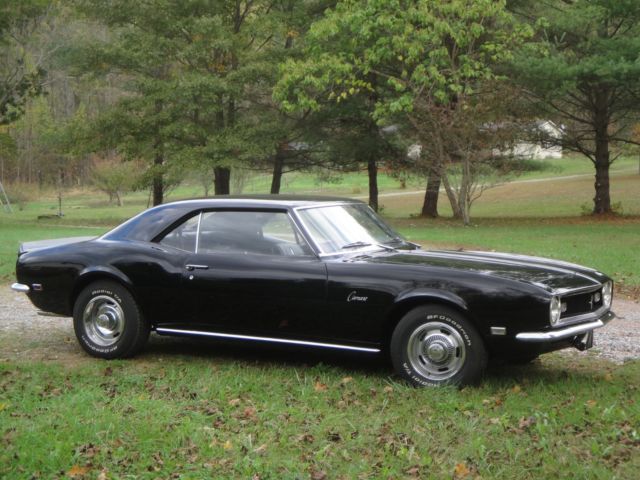 Up for sale a 1968 Camaro which is one of 1139 built in Antwerp, Belgium and brought back to the states in the 1970's by a serviceman station in Germany. Seldom seen or heard of (YES) Rare ?? In my opinion yes, in the fact no one has put a cowl hood, SS or Z28 emblems on the car yet. You can read about these cars by searching on the web, Camaro Foreign Assembly plants- Camaro research group. Factory options on this car: Power steering Power disc brakes, dual piston Deluxe interior Fold down rear seat Rear window defrost Console Console mounted clock Radio delete New items and work performed on the car in the last two years: Painted, good driver quality Brakes, master cylinder, calipers, wheel cylinders, rubber lines Tires 14" BFG'S, GM bans,new center caps, GM 14x7 rally's Tail light bezels, rocker moldings, door handles, door mirror, emblems, grille, NOS upper and lower grille moldings. Aluminized exhaust with flow master Detailed under the hood, removed all brackets, pulleys and latches sand blasted and painted. Alternator, ps & fan belts Things that have been changed or not original to the car Engine, now has a 1973 350 with 2barrel &headers. Paint color has been changed to Black. Things that make this car special 100% original Interior (very nice) Original sheet metal car Original weather-stripping Original transmission & rear end,AT power glide & 10 bolt Original inspection sticker on windshield from 68 Also original paint color was Silver. You could not get silver 68 Camaro in the US. The fact it was not built in the US. Things that are different from US built Camaro's 200 MPH speedometer (km) Seat belts Two dimmer switches. One for the headlights & one for factory Fog lights Inside of trunk & firewall were painted body color No firewall trim tag or in dash vin. This car has one plate located above the heater box with vin & trim info.