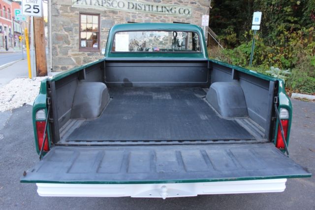 1972 Chevrolet C10 Mostly Original Classic which has been "Unmolested" except for paint! First 40 years spent in Southern Virginia (Have original 1972 VA plates). Last 4.5 years spent in Maryland Solid Body/Frame (some rust in rockers & lower front fenders) Runs like a top and drives great, take anywhere! Specifications: -1972, C10 "1/2 ton" Longbed Fleetside -307ci, V8 -Three Speed Manual Transmission, "3-on-the-tree†-64,000 Original Miles (Documented) -3:73 Rear Gear Ratio Recently Replaced Parts: -Tires -Gas Shocks -Rear Coil Springs -Front Sway Bar -Lights/Cigarette Lighter -Retro FM Stereo -Brakes -Gas Lines -Rams Head Manifolds and Dual Exhaust -Installed HEI Ignition/Wires (have original distributor) -Installed Sound Deadening inside cab -Installed safety/shoulder seatbelts (have originals) -Dash bezel and Tachometer -Chrome rear view and side mirror -Chrome door handles, window cranks, door thresholds -Window seals -Original Steering Wheel Reason for Selling: Hate to part with it but need a more practical car for college. Note: I have all of the paperwork from each of the 3 owners. One lady owned the truck from 1973-2012 and she willed it to a Reverend before we purchased it in 2013. (no-kidding, I have his information) |