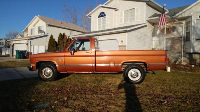 All original 2 owner C20 Scottsdale. Rare 5.0 304 with Electronic spark control. Manual 3 speed with L gear. Very nice overall condition. Runs fantastic going down the interstate or in town. The interior is in great original condition and is very clean but has a 3 inch tear on drivers side bench. 1 crack on dash board. Everything is functional, lights, original stereo and speakers, heater and all guages function properly. The maintenance was kept up and has documentation of worked performed to include Complete clutch kit, Valve guides, seals, alternator, starter, electronic control module, Plugs, wires, carb rebuild, radiator, brake booster, battery all was done in the last 3 years. This C20 runs and drives like a new truck. The exterior is finished in the original Burnt Orange Metallic and still holds a wonderful shine. Body is really straight no dents, no rust. Previous owner had some paint bubbling in some areas on passenger side which he had repaired and primed but never painted. Rest of the paint is fantastic. I bought this truck from the original owner who handed over original sales receipt, owners manuals, service records. I purchased it to do some work on our property in Idaho and has served us well. I drove the truck from Idaho to Utah around 100 miles last week with no issues. Thank you for viewing J Caldwell$6,500 or best respectful offer. |