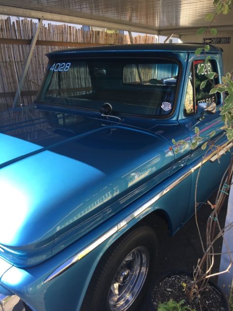 | Beautiful example of mid sixties Chevy truck 350/350T 4.56 12 bolt, all glass, body work/paint, stainless trim, bed wood, interior, tires/wheels, brakes, engine/trans., replaced. Truck raced at Pacific and Bremerton several times runs 12.60's at 3800 lbs. truck always kept inside since redone. |