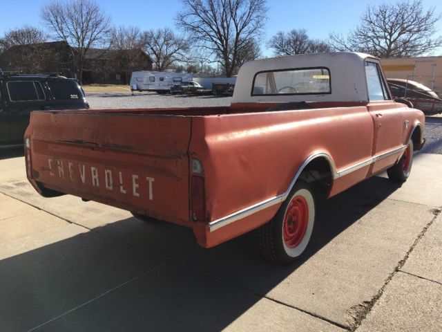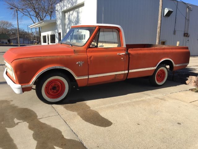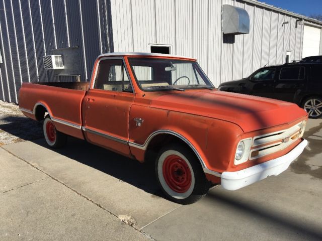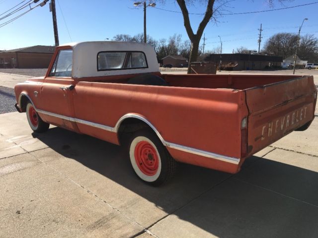 This is my 1967 Chevy pickup and it'd be a great project for someone. It has the original 283 V8 and a 4-speed manual trans. It doesn't run right now but the engine does turn over by hand. New cab corners and outer rockers have been put on and the wheels have been blasted and painted with a nice set of wide white walls from Coker put on them but that's as far as I've gotten on this project. It comes with an extra set of rear trailing arms, new body mount kit, tie rod ends, ball joints, sway bar bushings, A-arm bumpers, rear break shoes, rear lowering shocks, adjustable pan hard bar, frame notch kit. The buyer is responsible for making all pickup and shipping arrangements. If you have any questions or want to come look at it let me know. Thanks Joe