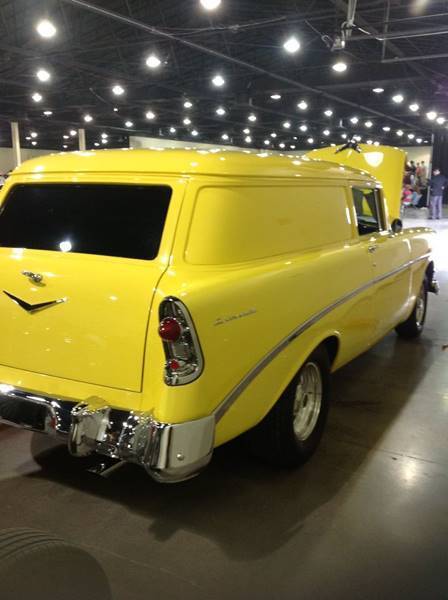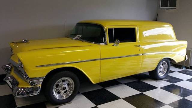 | July 1, 1956 7,441 Sedan Delivery Wagons were produced, making this a hard to find model in todays market. This lemon yellow sedan delivery wagon has had a ground up restoration and remains in very good condition. It is processed by a 383 cu in engine in a V-8 with a 350 transmission. power steering power brakes chrome & paint are in excellent condition, Automatic shifter on the floor, pioneer radio cassette am/fm stereo. A/C and heat. Mileage is exempt. |
