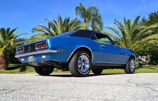 1968 Chevrolet Camaro Rally Sport For Sale ( Frame off Restoration). Upgraded 350 cubic inch v8 engine with Dart aluminum head and intake top end package, Demon 4 barrel carburetor, headers, dual exhaust, power glide automatic transmission, aluminum radiator, 15"Â Cragar SS wheels with Cooper Cobra raised white letter radial tires, factory code U Le Mans blue exterior, cowl hood, black vinyl roof cover, hideaway headlights with upgraded electric motors, black bucket seat interior, center console with floor shifter, AM/FM Radio. This beautifully restored Rally Sport Camaro features painted floors and a high quality restoration. Don't miss this beautiful GM muscle car!!! Price $39,900 Automotive History: The first-generation Chevrolet Camaro appeared in Chevrolet dealerships in September 1966, for the 1967 model year on a brand-new rear-wheel drive GM F-body platform and was available as a 2-door, 2+2 seat, hardtop (no B or centerpillar) or convertible with a choice of six-cylinder and V8 power plants. The first-generation Camaro was built through the 1969 model year. Almost all of 1967-1969 Camaros were built in the two U.S. assembly plants: Norwood, Ohio and Van Nuys, California. There were also five non-U.S. Camaro assembly plants in countries that required local assembly and content. These plants were located in the Philippines, Belgium, Switzerland, Venezuela, and Peru. The Camaro's standard drive train was either a 230 cu in (3.8 L) straight-6 engine rated at 140 hp (104 kW) or a 327 cu in (5.4 L) (307 cu in (5.0 L) later in 1969) V8 engine, with a standard three-speed manual transmission. There were 8 (in 1967), 10 (in 1968), and 12 (in 1969) different engines available in 1967-1969 Camaros. There were several optional transmissions. A four-speed manual was available with any engine. The two-speed Powerglide automatic transmission was available all three years. The three-speed Turbo Hydra-Matic 350 automatic became available starting in 1969. The optional automatic for SS396 cars was the Turbo 400 three-speed automatic.