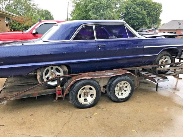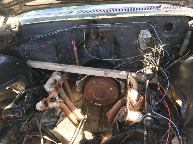 | 64 with orig interior and head liner .(no rips ) It is a factory 4 speed car pedals still in it & i have all the chrome. The trunk & floors are in good shap, the automatic trans IS IN car now . RIMS ARE NOT ON CAR NOW but has diff set of rims on it ! It needs a motor, look at pic well before you bi, this is a 1964 PROJECT !! from some I've seen this is pretty solid car! |