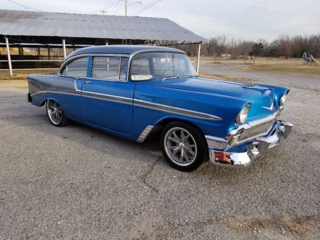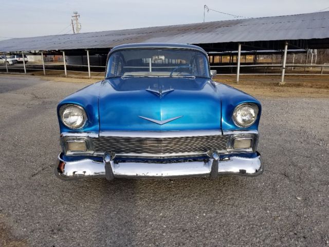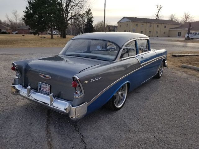 Relisting due to nonpaying bidder. Please do not bid if you don' have the funds and your wife's permission. . 1956 Chevy Bel Air 2dr sedan. 350 v8 with a small cam, 350 automatic transmission, power brakes, dropped spindles and disc brakes up front. This car is far from a show car, just a fun driver. The seats have been recovered but could use new door panels and headliner. The factory guages dont work and there isn't a heater. I had planned on doing digital guages and vintage air. I did not build this car, just bought it to cruise while working on my 55. My 55 is done and this 56 needs to go to a new home.