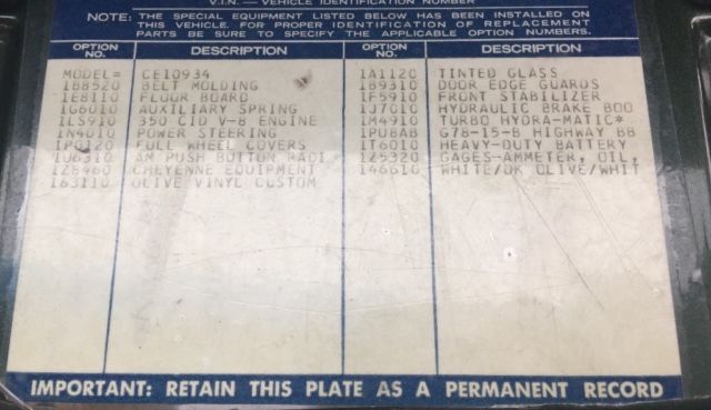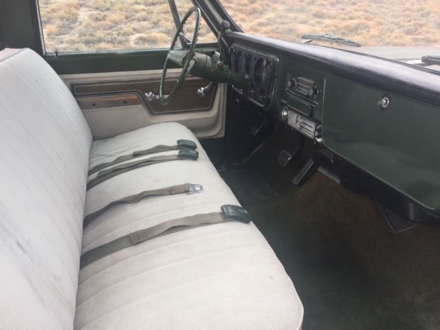 You are looking at a real 1972 Chevrolet Cheyenne C10! This is a very original unmodified Cheyenne C10. The truck has all of its original sheetmetal(with the exception of the right front fender). The dash is uncut with the original push button AM radio. The doors and kick panels have no speaker holes cut in them. The wood bed floor, tailgate, bed front wall and rear wheel houses are original, rust free and in excellent condition. The passenger side cab mounts are rust free. The driver's side outer cab mounts, both outer rockers and both cab corners have rust as seen in the pictures. The Service Parts Identification(SPID)tag is in tact in side the glove box door. The SPID lists all the factory installed options the truck was assembled with. These options include: 350ci V8 engine, turbo hydra-matic TH350 automatic transmission, power steering, power assisted front disc brakes, factory tinted glass, deluxe gauge package, front stabilizer bar, lower belt moulding, wood bed floor, auxiliary heavy duty overload springs and the Cheyenne equipment package. The Cheyenne equipment package includes: full foam bench seat, wood grain door panels, chrome trimmed headliner, bright trimmed pedals, door activated dome lamp, rear cargo lamp and special exterior and tailgate trim. Truck runs and drives well. All the gauges work with the exception of the fuel level reading erratic from time to time. Odometer is only 5 digits so the 110k miles are an estimated mileage. True miles are unknown. Buy it now price includes your choice of interiors. We were gathering Parchment white parts to make a Highlander tribute. Buy it now price includes your choice of black vinyl or white cloth bench seat, Parchment white or dark green door panels. If you have any questions or would like additional photos email me at CoClassics@gmail.com |