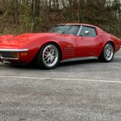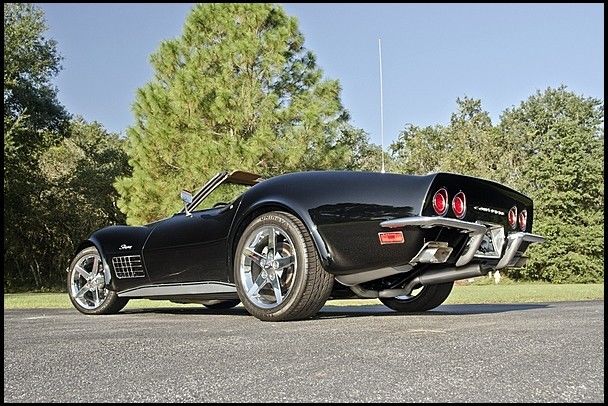 True show quality Resto-mod built from the ground up with outstanding attention to detail. The suspension and drivetrain have been tuned to deliver modern performance and handling with the classic look and lines of the steel bumper C3 body. Features a Jameson tube chassis engineered and designed for the C4 corvette rear suspension to provide excellent handling. The front end has C4 spindles and a-arms with coil over springs and shocks. The steering is rack and pinion and linkage by Flaming River. The brakes consist of Wilwood and C4 components. Wheels are chrome C5. The engine is a LS1 with an LS6 intake. The transmission is a Tremec 5 speed manual. The body is flawless with a highest level of professionalism evident in the preparation and paint quality. It is truly deserving of the gloss black finish. Interior is fresh saddle tan leather. A new Sta-Fast black convertible top provides excellent fit and finish. AC provided by Vintage Air maintains cool comfort even in 100 degree heat. This Corvette is the real deal in looks, performance and drivability. Drive it to a show, open the hood and the crowds gather to see the unique quality built car that it is. |