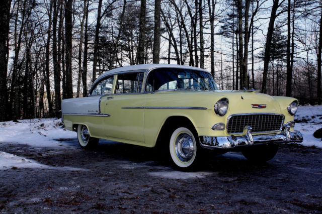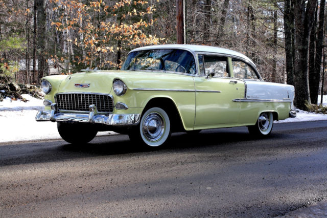 Here is a great old 55. The guy I bought it from acquired it with the intention of making it a street rod. After examining the car, he decided it was just to nice and original to mess with. She sat for many years in a garage then completely restored in the 80's. There is a large binder including a journal and many receipts of everything that was done to the car. This car was well loved. Everything was done to factory specs including original colors of India ivory and harvest gold per cowl tag numbers. The only upgrade was that dual exhaust was added. She has her original 265 engine witch runs excellent. No noises, not ticks, no knocks, no smoke, She starts up instantly with one pump of the gas. The automatic choke works perfectly. The car is tight on the road and also shifts perfectly. When you get inside the first thing you notice is the ticking of the clock. Everything is in working order. lights, horn, turn signals, wipers, etc. The only thing that has given up is the stock radio. As for the paint, it does have a few imperfections as seen in the pictures. There are three spots where the old paint has peeled from the metal on hood, trunk, and side skirt. I was going to touch them up but decide to leave them alone so anyone can see there is nothing to hide. She really does not need a complete paint job. There is no rust through the body. The only rust on the car is where the paint has peeled off, and this only on the surface. Underneath the car there is no rust or repairs to the floors, trunk, or frame. She is a solid car. The body is nice and straight with no dings or dents. The chrome and stainless are like new. All the glass is good with the exception of the passenger window witch has a crack. Interior is excellent. According to the journal entries in the logbook, there is only 13000 miles on this car, but I cannot confirm. It would not surprise me given the condition this car is in.If your looking for an honest 55 that hasn't been altered or modified, this is the one. Can deliver the car within 500 miles on my flatbed for a reasonable fee. $500 deposit required. Thank you. Video of car starting and running https://youtu.be/zDr7RCrWJ1Y