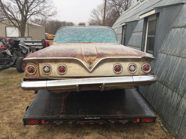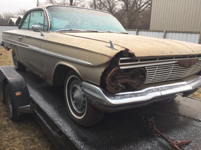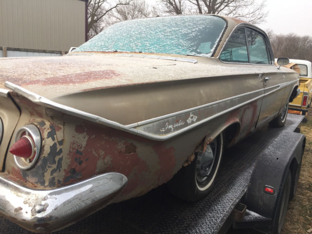 1961 Chevy Impala "bubbletop" 2dr Hardtop. Has numbers matching original drivetrain it is a 348cu BB 3 spd standard shift on the column. Have clean original title. Comes with a nice set of repairable fenders. Has the original big block fan shroud. Also included is a rust free solid straight frame. This is a major project needing everything. <Car is for sale locally and we reserve the right to end the auction at anytime> |