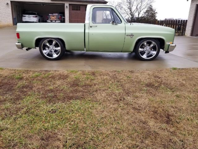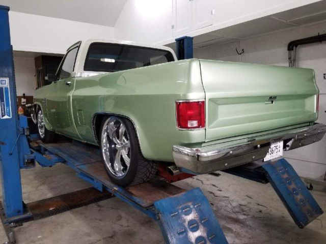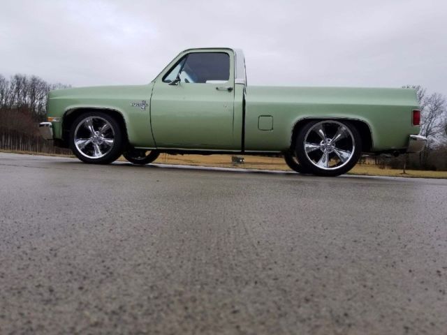 Up for Sale is this BEAUTIFUL 1985 Silverado C10 frame up restoration, the paint on this truck is candy apple green metallic with a pearl white top strait as an arrow down both sides absolutely beautiful in the sunlight. The front end on this truck has been changed over to a suburban front end power train is a 350 4 bolt, RV Cam holly sniper EFI vintage air all new everything down to the radiator new 350 turbo and highway gear rear end. Has a 12 bolt rearend and flow master exhaust. The EFI set up is self tuning and very responsive no lag, suspension is CPP Upper and Lower control arms beltech front and rear sway bars bars, beltech 5/7 drop 3" spindles 2 springs flip kit on the rear and shackles c notched rides like a dream no rubbing issues no squeaks or rattles it is like a brand new truck, interior is all new dash pad is not cap, Dakota digital dash flaming river tilt wheel, new door panels, headliner, carpet, TMI custom seat over 2500 alone for the seat everything works on the truck like it should all dome lights under dash lights back up lights horn etc. pictures do not do this truck justice Has 20s in the front and 22s in the back with brand new nittos on them all the way around truck rides and drives just like a brand new one would not hesitate to get in and drive it across country ice cold a/c and very hot heat call or txt me if you have any questions on the truck 865-661-4511 again pictures do not do this beauty justice! It is for sale or trade. Truck only has 1000 miles on it with new engine and transmission