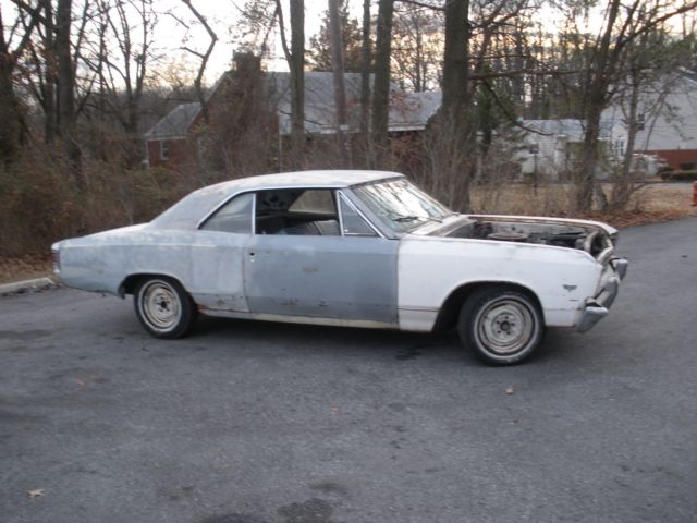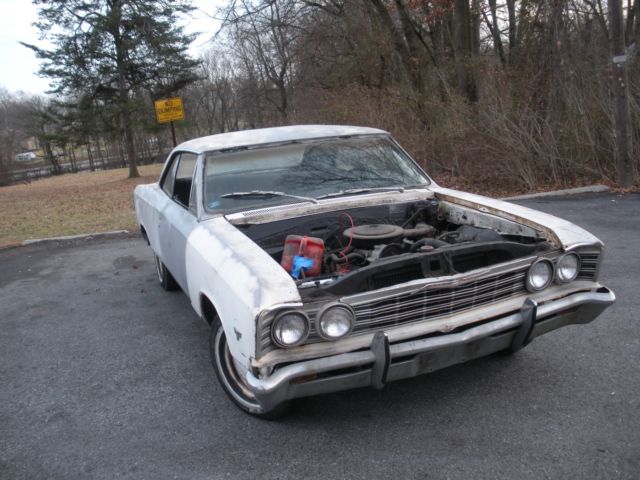 1967 being sold as is 283 auto, Running needs major body work floors and trunk area, Frame very good con, Car will run and drive and stop . Comes with floor pans and rear qt panels .Clear title True millage unknown Was raised to put in new body mounts . Have new gas tank in box took off to weld round trunk area. not done yet running on gas can . Has all window trim needs windshield Car front and rear body mounts back on . Can drive as is .Have to replace floor pans and whole trunk pan where other body mount go,Car comes with other small parts and dash panel Painted frame black. Has MD title in my name Car will drive on trailer. Can help you get a shipper if needed at your cost No reserve bid to win