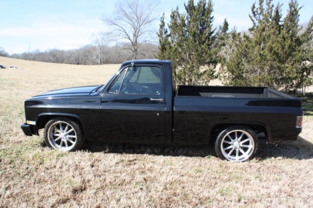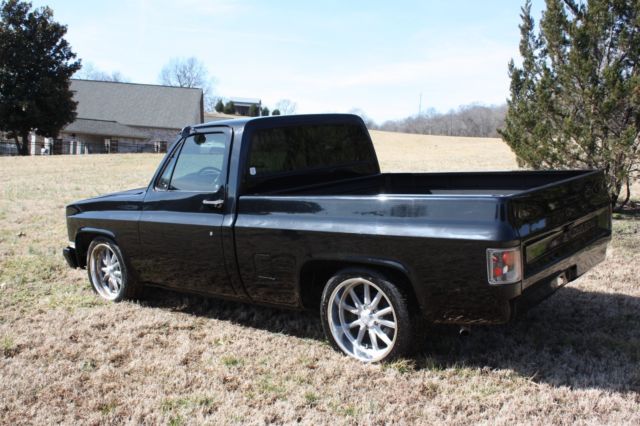 1985 Chevrolet C 10 series. This truck has factory a/c, factory window tint, Silverado package, new 20 inch staggered wheels with new tires, new motor, new interior, new bed liner, shaved mirrors, over 5k in paint and body work. It was not rusty before restoration. It has service receipts and records from 2015 when it was restored. It has only had 2 owners from the same family. This truck is immaculate other than one spot on the right front fender where the clear coat is peeling (see picture). These trucks are getting hard to find especially in this condition. The auction is started low but please don't try to low ball, the reserve is over 15k. **We have this forsale locally as well andreserve the right to end this listing at any time**