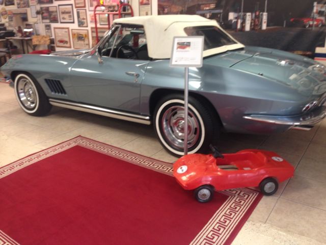 | 1967 Corvette in beautiful rare Elkhart Blue exterior ( only 1096 produced) and Teal Blue interior, with new Teal carpet. Highly detailed Number Matching L79 (327/350hp) engine, along with matching M20 4 speed transmission and rear end. Clean and solid undercarriage. Options include Power Brakes, AM/FM radio, along with new Coker radial tires. Go to aaclassiccars.com for more info and pictures, and other Corvettes for sale. Also follow us on Facebook! Buy today, and win trophies this weekend. |