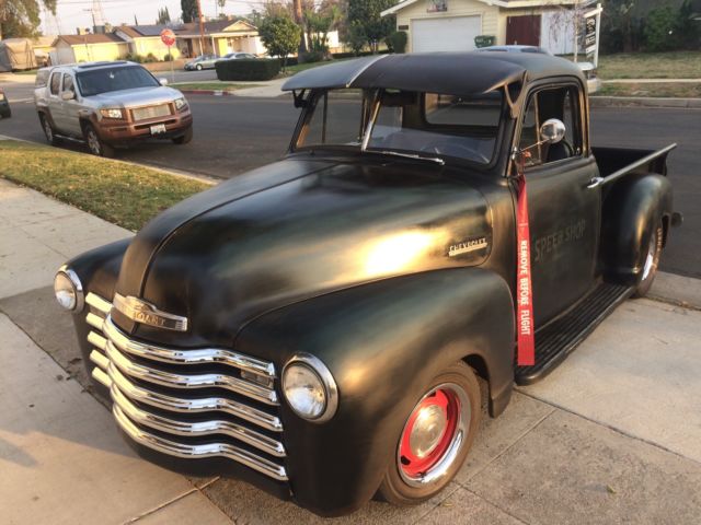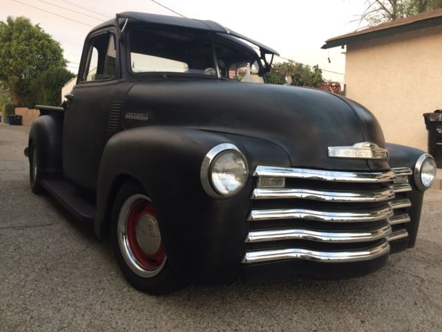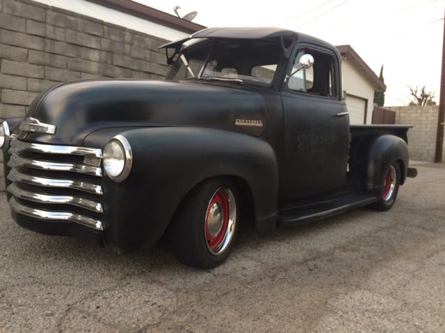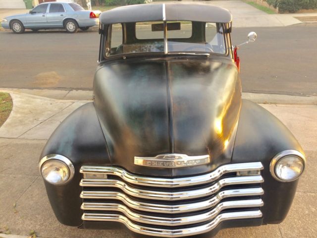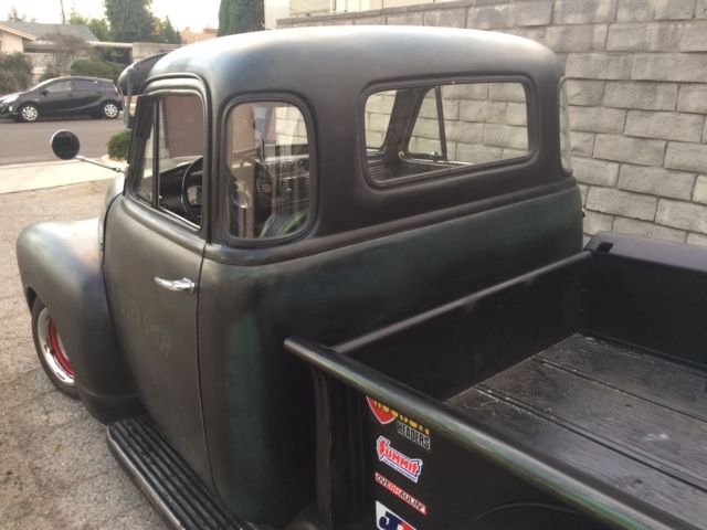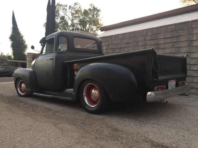 This 1951 5 window Chevy truck all steel... has that old school look with a modern twist, the truck was built to keep as much of its original patina as possible, but underneath is a modern truck getting its power from a 305 JEGs create motor that is carbureted and backed by a turbo 350 transmission Camaro front clip with PS PBdistilled at front. This is a fun truck to drive,steering withone finger and has asmooth ride....easy enough driver your wife can drive it . Drive train and chassis:new 305 Jegs create motor with Edelbrock 4 barrel intake and Edelbrock carburetor, electric fuel pump, MSD ignition, power steering, aluminum radiator, new sparkplugs, wires, belt, Turbo 350 transmissio, on the floor shifte, camaro front clip, 10 bolt chevy rear 273 gears for fwy driving all day long,exhaust all the way to the rear with mild sound 15" steel wheels with baby moons and beauty rings, New tires front tires P195/60R15 / rear P295/50R15 for nice stance The body: nice and straight no rust with nice looking patina, bed has wood and you cancarry anything built to be useddoors open nice and easy, windows roll up and down, vent windows have new sealsoriginal fulton sun visor.New Grill The interior:Truck has full interior. new seat, carpet and kick panels. originalstring wheel with vintage suicide nub, patina dash, heater, No AC Electrical:all electrical isgood, low and high bean, stop lights, turn signals The sales pitch:This is a fun, easy to drive truck, all modern underneath with just a touch of old school and great classic patina on the outside, no need to worry about scratching this one, its already been done! The "old girl" runs and drives down the road straight, sounds great with the dual exhaust, stops on a dime with no over heating problems....drive anywhere Sold as is, no warranty written or impliedall funds must clear first beforereleasing vehiclewelcome to inspect before auctions end. NO TRADES |