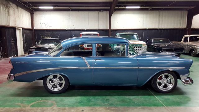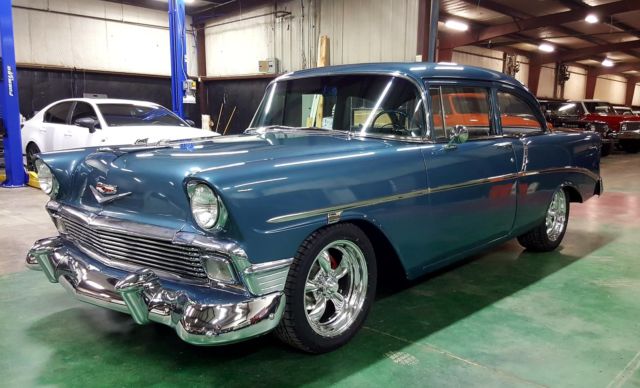 1956 Chevrolet 210 two door sedan. VIN VB56K125092. Odometer reads 99,543 miles. 350 V8 engine with 3 speed manual transmission (column shift). Upgraded power disc brakes with manual steering. Runs and drives great. Stops very well. The body is straight and solid with blue-green metallic, driver quality paint. The black cloth interior is in good condition and shows well. Brand new 17" Torque Thrust wheels and tires. Excellent cruiser. Great classic Tr-Five Chevrolet that is only going up in val...ue. Please look at all of the photos, then email or text 940-427-1138 if you`d like more information on this vehicle.PLEASE SPECIFY WHICH VEHICLE YOU ARE INQUIRING ABOUT (I have several).*IF YOU HAVE A TRADE* please send photos of your trade, detailed information about your trade and the price you`re looking to get for your trade.If you do not include this with your trade offer I will not respond. All sales will be subject to document and state fees. All Texas residents will be subject to sales tax, document fees and state registration fees.