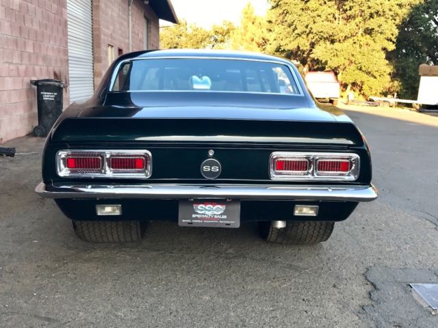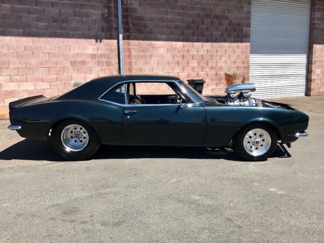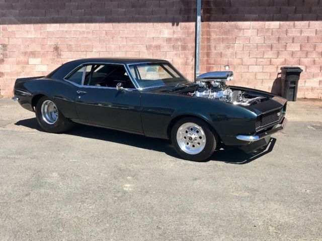1968 Pro Street rs/ss camaro Clean California title and currently registered **First off this car was built for street driving and reliability in mind that could go to the track and turn a good respectful number and drive home,smoothed & painted firewal (car is a very dark emerald green not black) **Motor was built by mike Lewis racing in laytonville California and I have a paperwork and specs on motor, **406 ci small block,pump gas,dart little m block,dart pro1 aluminum heads,scat 4340 forged crank,scat 4340 6 inch H beam rods,J&E forged dish pistons (compression is 8.1) custom grind Isky solid roller cam,weiand 671 blower that's 10 % underdrivin and made 625 horsepower,the carbs are two demon 650s that are boost referenced.. **Trans is a th-400 with stall built for this combination.. **Rear end is a 9 inch with ladder bar back half, 4:11 gears,mark Williams latter bar back half,disc brakes and strange axels,rear tires are m/t 29/18.5/15 **The front suspetion is all new with tubular upper and lower control arms,2 inch drop spindles and qa1 coilovers.. **Interior has stock redone front seats done in houndstooth with a custom rear seat that matches,nice carpet work and has a custom subwoofer incloser with two ten inch kicker subs and two amplifiers that's built in under the rear seat (when you look at the inside if I didn't tell you about it you wouldn't even notice) **the two pics with the hood on the car is when I bought it from a classic car dealer I still have the steel cowl hood just wasn't sure if I wanted to cut a hole in it or not but it will go with the car along with the chrome hood hinges.. ** cons **-Car is very well built and rust free besides a little bubbling on the bottom of the drivers side door (see pic)..-CD player needs to be installed but will come with the car.. -Car has one small scratch on drivers front fender (see pic) and one hairline crack in the paint under drivers quarter window (see pic) Any question feel free to call me at (707)380-5335 |