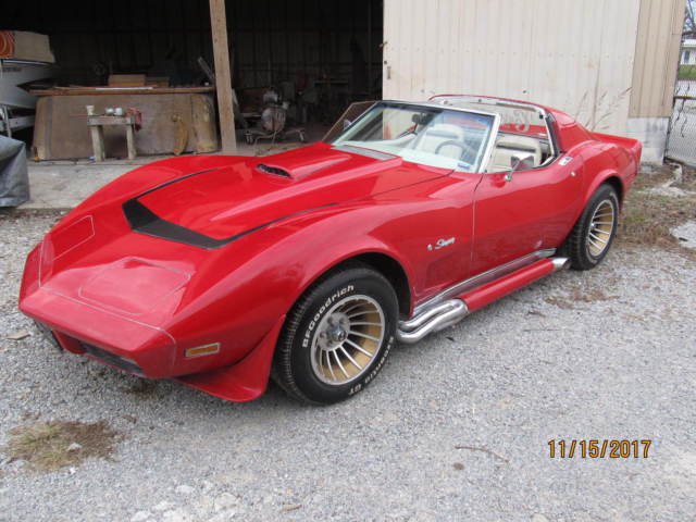 | 1974 Corvette with 350 and 4 speed. Runs and drives great. New suspension (springs and shocks), new steering box, fuel pump, exhaust, electronic ignition. Older turbo set up not functional but I never kicked in anyway. Former show car with nearly $30k invested. Seats covered in finest leather at $2,000 each. No AC. Have T tops. Side pipes for looks only, conventional rear exhaust. Same owner 15 years. Located in Kingston Tn (East Tn) close to interstate. |