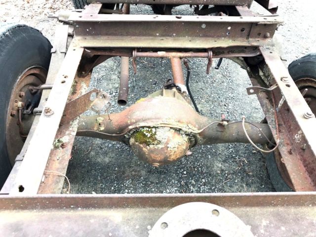 NO TITLE THIS IS A BUNCH OF PARTS OR IF SOMEONEHAS A ENGINE ANDTRANSMISSION THEY CAN ATTEMPTTO HAVE A RUNNING DODDLE BUG WITH A AMATEUR SHORTING OF A 1&1/2 OR 2 TON# 1 THIS ITEM HAS BEEN PARKED IN THE WOODS SINCE HECTOR WAS A PUP.# 2 THE ONLY ITEM THAT TURNS IS THE REAR DIFFERENTIAL # 3 NO BRAKES# 4 BOTH FRONT WHEELS ROLL AND THE DRIVERS SIDE# 5 BRAKES ARE STUCK ON THE PASSENGER SIDE REAR# 6 THE COWL IS RUSTY AND NOT SOLID TO THE FRAME.I AM TRYING FOR THIS TO BE FOR PARTS TO SAVE IT FROM THE CRUSHERTHERE WILL BE HELP TO LOAD ON A LOWBOY TRAILER OR YOU CAN TAKE PARTS AND LEAVE WHAT YOU DON'TWANT |