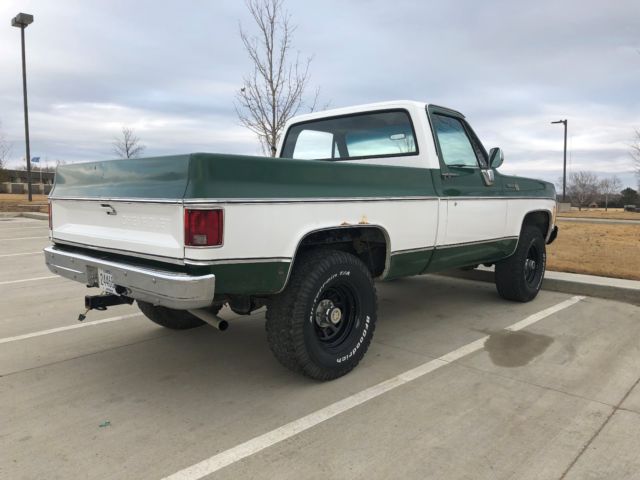 This one cool, 83' Chevy pickup. Truck runs perfect, and drives straight. Doesn't smoke or leak a drop of oil. Has the K10 chassis with a C10 body, short-bed. This makes a great work truck, daily driver and isn't far off from being show room quality. 4WD works perfect and locking lugs move freely. Engine has just over 22k miles on it. 4 speed Munci with "granny gear". Selling it to make room for other projects. You'll notice some surface rust on 3 fenders/quarter panels as well as in the rockers. Really pretty amazing for this year/age. New alternator, belts and plug wires. Questions or more pics, message me and I'll get them right over. Low reserve, so bid away! -Ken