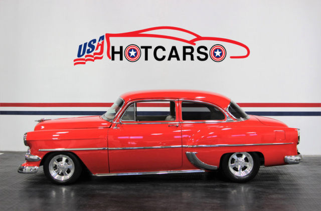 Beautifully Built 1954 Chevy Finished with AC, Overdrive, and a Killer Stance!1954 Chevy 2 Door Sedan - Head Turning Custom Built Cruiser! • Small Block Chevy Engine. • 700R4 Automatic Overdrive Transmission. • Edelbrock 4BBL Carburetor. • Edelbrock Aluminum Intake Manifold. • Fully Chromed and Polished Engine Compartment and Accessories. • Jet Coated Sanderson Headers. • Dual Exhaust with an X-Pipe and Flowmaster Mufflers. • Aluminum Radiator. • Power Steering. • Power Front Disc Brakes. • SSBC Front Brakes. •... Front Sway Bar. • Nova Front Clip. • Tubular Upper and Lower Control Arms. • 10 Bolt Rear Axle. • Rear Air Shocks. • Fully Custom Interior. • Classic Instruments Gauges. • Chrome Tilt Steering Column. • Custom Polished Steering Wheel with Leather Half Grip. • Alpine AM/FM/CD/Bluetooth Stereo. • Tinted Glass. • Vintage Air Conditioning. • 15” Chrome Billet Specialties Wheels. If you are in the market for that special car then come to our showroom in San Ramon, CA. Make your dreams a reality, call the USA Hot Cars Team Today Need financing assistance? Give us a call - we have excellent rates!! My Hot Cars dba USA Hot Cars is the Premier Classic and Muscle Car Dealer with over 29 years of helping customers from around the world find the car of their dreams. Call us at: USA Hot Cars 877-718-1091, or 1-877-718-1091. Email us at: .