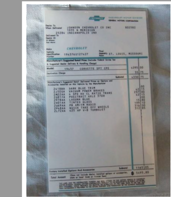 Description of 1966 Chevrolet Corvette L72 |