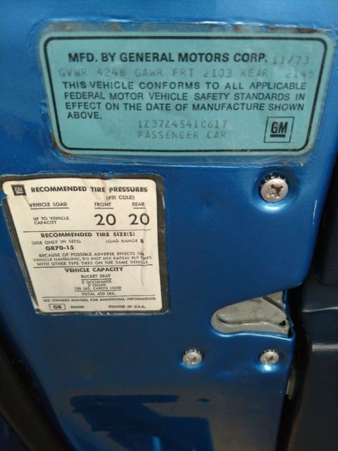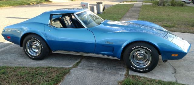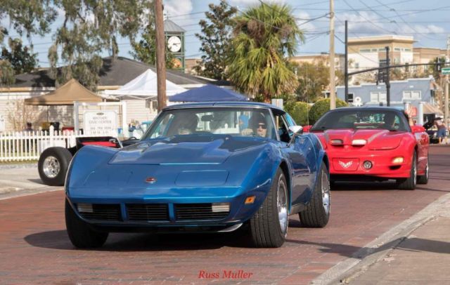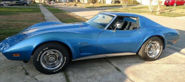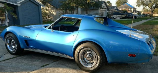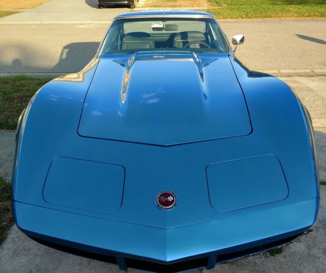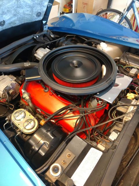 Numbers matching engine and transmission, correct medium blue paint, dark blue standard interior. A/, power windows, rear defroster, AM FM original radio (it works) as does everything else on the car. Frame or body off was done about 8 years ago by a very reputable shop in New York, previous owner to me is a very well known corvette and muscle car expert, and NCRS part time judge. I'm not going to name names.. but I have proof I can provide to the new owner.. They had an issue with the clear coat yellowing.. so the car was disassembled to repaint and it sat in the shop until last year when I bought it.. The car was never put on the road until I finished it. Has about 500 miles on it... They built the car for NCRS top flight. Powder coated frame, all new brake lines, fuel lines, fuel tank, hoses, bushings, bearings, brake calipers, rotors, booster, master cylinder, driveshafts, half shafts, riveted ball joint, correct exhaust...I did put a set of magna flow mufflers on it..I have the brand new stock mufflers that come with it.underneath looks better than new.If you want to do the NCRS thing, about all you would need to do is a vintage battery, the mufflers and air filter, I believe it's a top flight car, I used the assembly manual to put it together.. Interior is mostly original with the exception of the door panels and carpet.This is about as close to a new 1974 corvette as you're gonna get