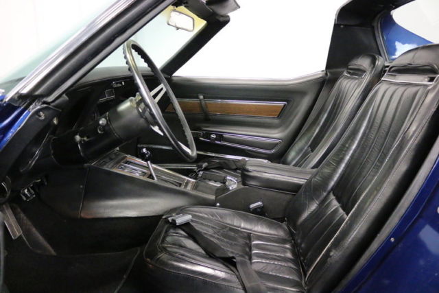 With its original big block still residing in the engine bay, and its original color still gracing its timeless form, this 1971 Chevrolet Corvette represents a rare chance to own a fine example of a true American sports car that's been extensively restored and greets the present day in top shape - looking and running great. It will arrive at its new home with an assortment of restoration photos in tow to document the precision and craftsmanship leading to its reascension to its current stellar form. Over the years, there have been countless examples of concept cars debuting to rave reviews, only to lead to production versions that bear only a passing resemblance to their inspirations. Not so here. Chevy debuted the Mako Shark on the Auto Show circuit in 1965, and the Manta Ray just a few years later - both as futuristic but fully functional concept cars that would go on to very directly influence the C3 Corvettes to follow, including this '71. Its original Bridgehampton Blue color has an unmistakably strong shine and finishing details that are so important on a classic all present well here, including table straight and blemish free front and rear bumpers, fresh-looking seals and chrome trim, and sharp badging. The T-top configuration is a great plus, affording the option of open air motoring with an easy transition to a more sheltered driving environment when the weather dictates, and the T-tops on this 'Vette are in very nice shape, still fitting snugly and looking good. Early '70s Corvettes featured inspired driver-centric interiors that balanced comfort and functionality exceptionally well, and this particular interior, professionally refurbished only 5 years ago, is looking just as inviting as it did when this 'Vette rolled out more than 45 years ago. A pair of race-inspired bucket seats look great as they straddle a well-placed center console that offers a padded armrest at just the right height - a fairly uncommon amenity at the time. Up front, the bevy of controls monitoring motoring functions sports an aeronautically styled theme, with the two dominant gauges behind the steering wheel joined by five more residing in the center, just above the AM/FM radio. There's a nice array of features on board here, including factory air that blows strong and cold through the in-dash registers, power windows, and a steering column that both tilts and telescopes to put the wheel in just the right position for drivers of all sizes. Big block power is well-represented underneath the lengthy hood in the form of a 454 cubic inch LS5 V8. It's good for a full 365 horsepower and, having undergone a thorough rebuild only about 1,000 miles ago, it's performing at its best, ready to provide miles and miles of driving adventure. It's paired with a 3-speed automatic TH400 transmission that shifts with confidence-inspiring certainty. Combine the Corvette's low-profile, road-hugging stance with its well-engineered suspension, smooth power steering and 4-wheel power disc brakes and you have a great handling classic that can also stop in impressively short order when needed. This seminal Chevy classic sits on a set of 15" stock Corvette wheels carrying BF Goodrich T/A radials. Featuring a great looking exterior - certainly a high-water mark for Chevy as far as style is concerned - and a fresh, road-ready drivetrain, this 1971 Chevrolet Corvette would be a great acquisition for the classic car enthusiast looking for open-air excitement and big block power. Call today!